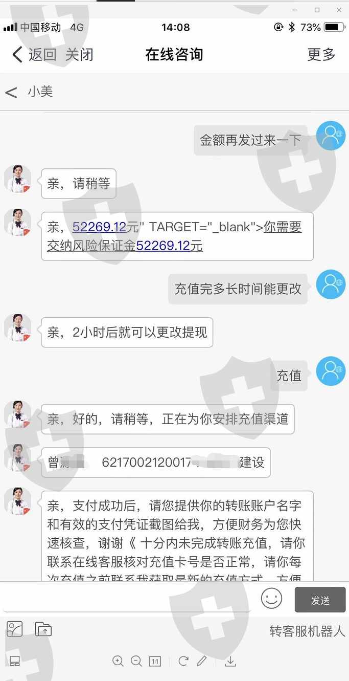 11与3号在网友的推荐下进入的该平台,说是能稳赚,先让我投200元试试,结果加本金返回了284.2元。后来让我充5000试试我没听充了500试试,结果加本金返回了710.5元。后来让我充值50000元我充了30000元网友充了20000元,结果系统显示我中了一个礼包给了一个18888元大礼包,让我在充值50000才能提现,充值完之后提现提不出来,客服告诉我需要有50000的投资才能提现。投资完了提现让我交个人所得税,交了23557.6元的个人所得税,后期更改银行卡信息让我交风险金,交了43557.6元的风险金,后期因为本人操作失误导致又一次更改银行卡信息又交了风险金52269.12元。之后给我发了一个反黑办的红头文件让我再交保证金30000元。结果网友因没钱个人所得税让我帮充了10000。至今还是无法出金!