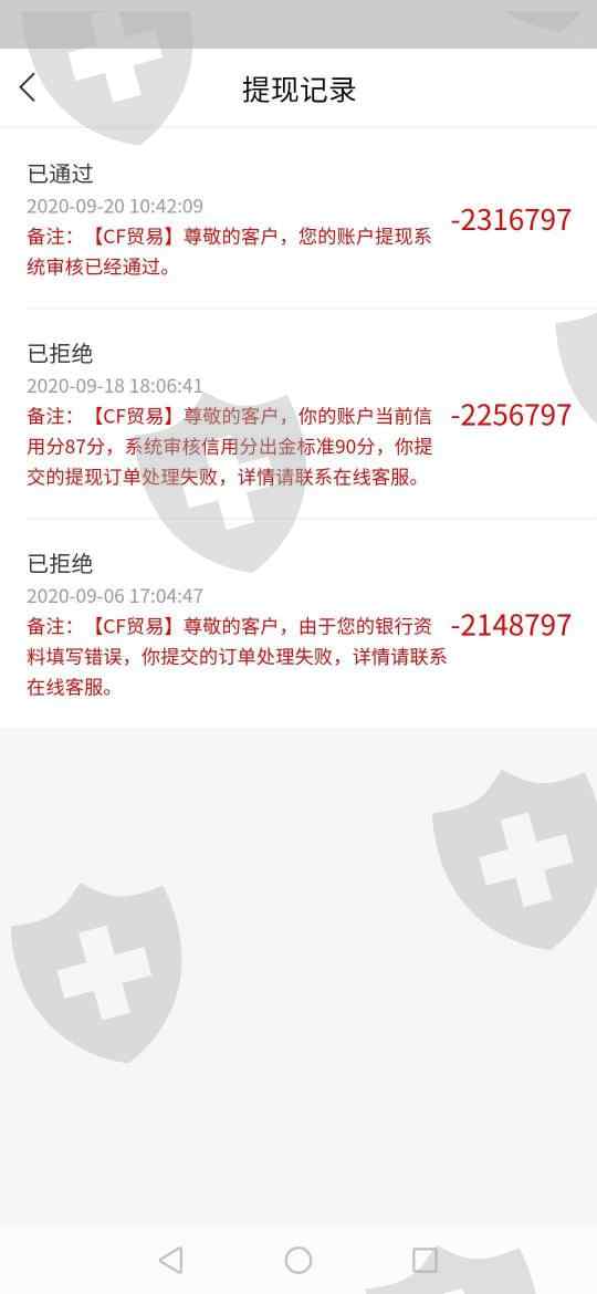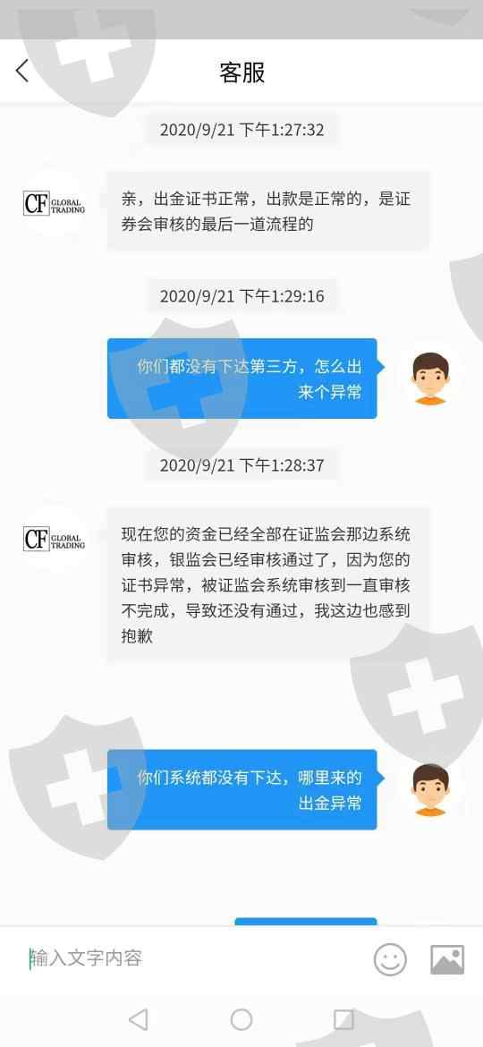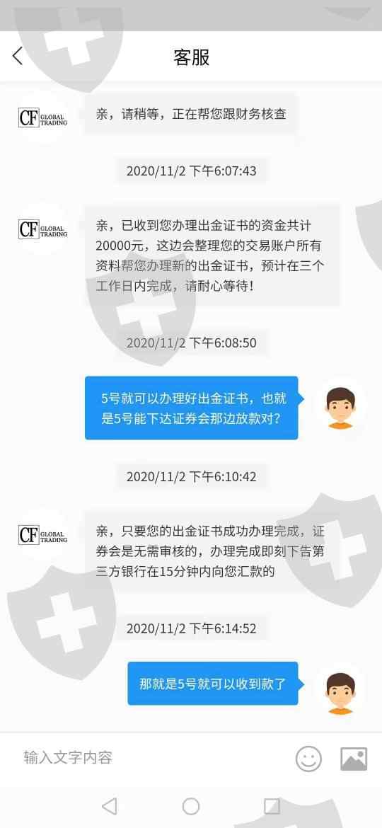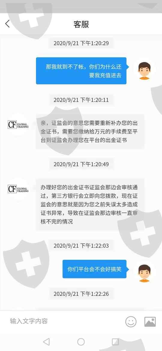 CF贸易平台为了不让用户出金,各种缴纳保证金,严重损害用户的资金,直到解决出金证书最后一道程序15分钟内到账,现在登都登入不进去,请求严查CF贸易平台。