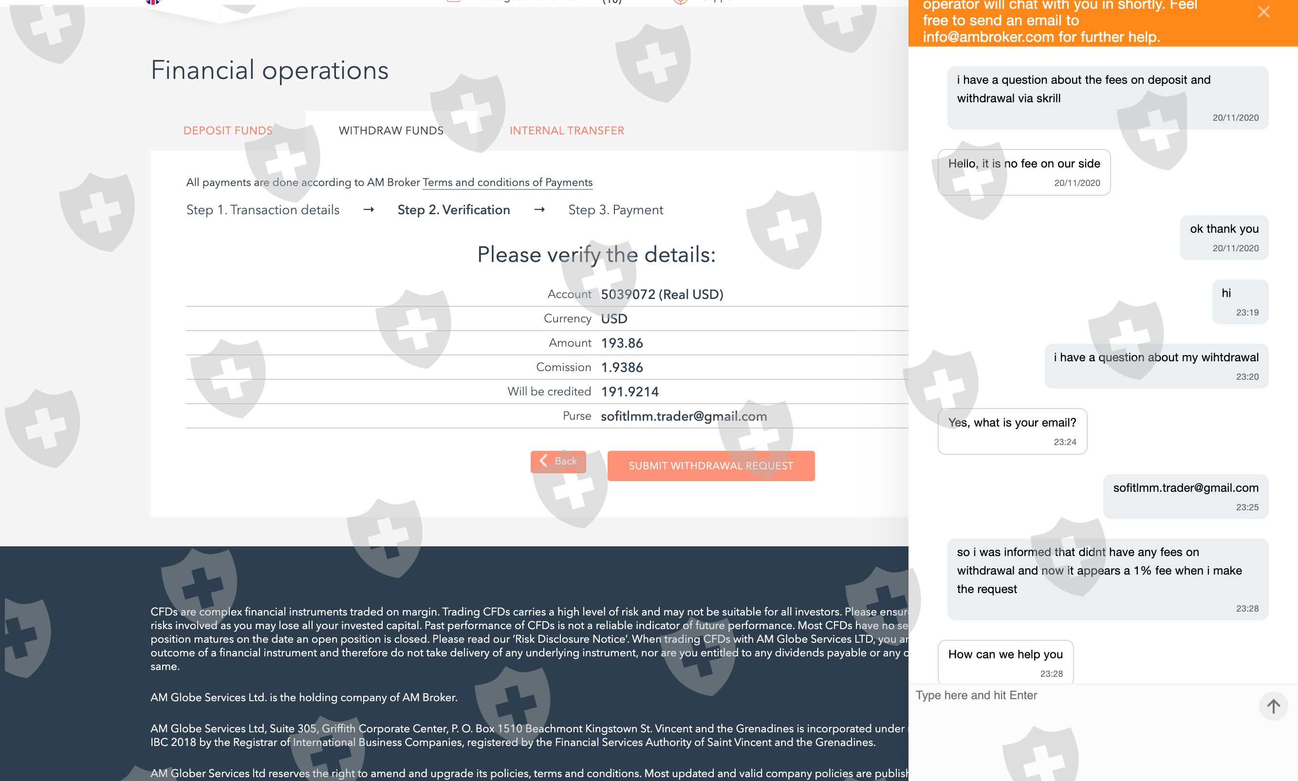 I asked before i deposit if there was any fees and the support team answer me NO. after i deposit, i start my trades and there was a BIG SLIPPAGE AND EXECUTION TIME for each and every trade i took. Clearly they use plugins. Fine, i went to withdrawal my money and surprise 1% fee of NOWERE. I have deposit via skrill USD and when i went to withdrawal there was the only option i had ( of course) and there is a 1%fee of different currency from the one i withdrawal. I went to live chat to clarify and completely LOST OF TIME. RIDICULOUS live chat. they dont know their job nether help an issue from their side. NEVER AGAIN. DONT DEPOSIT ON THIS COMPANY. SCAM!!!!!