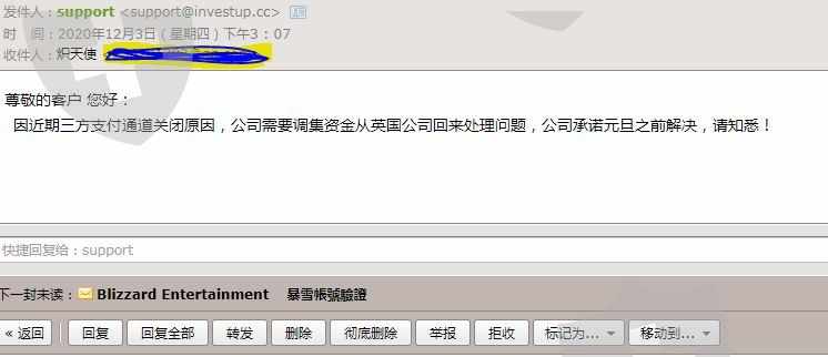 因近期三方支付通道关闭原因,公司需要调集资金从英国公司回来处理问题,公司承诺元旦之前解决,请知悉!