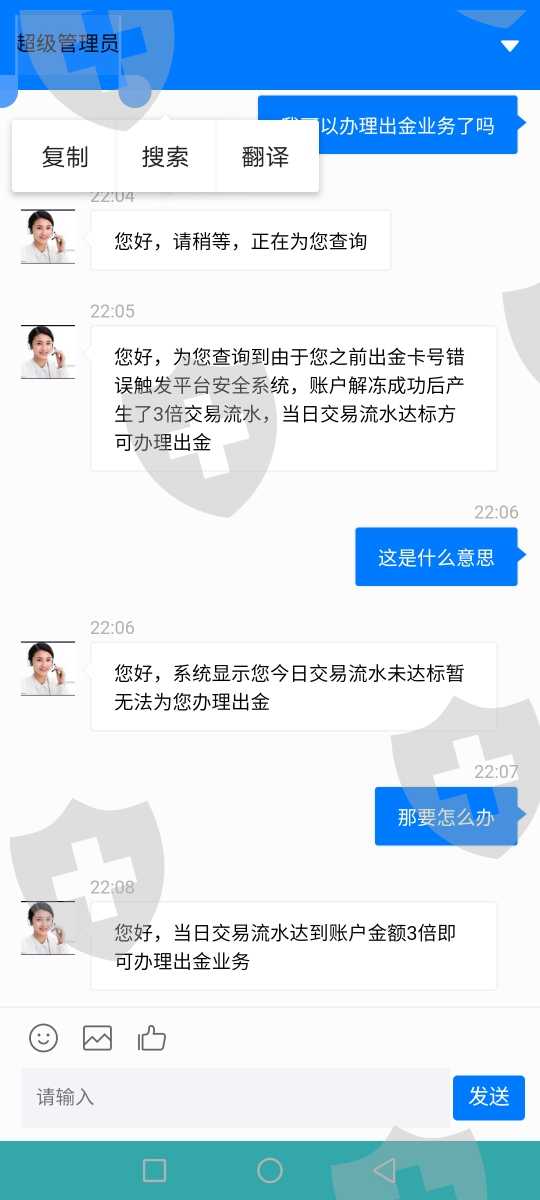 无法出金,冲解冻金后,又冲认证金,冲认证金后,又说流水不达标,无理由让我冲值帐号