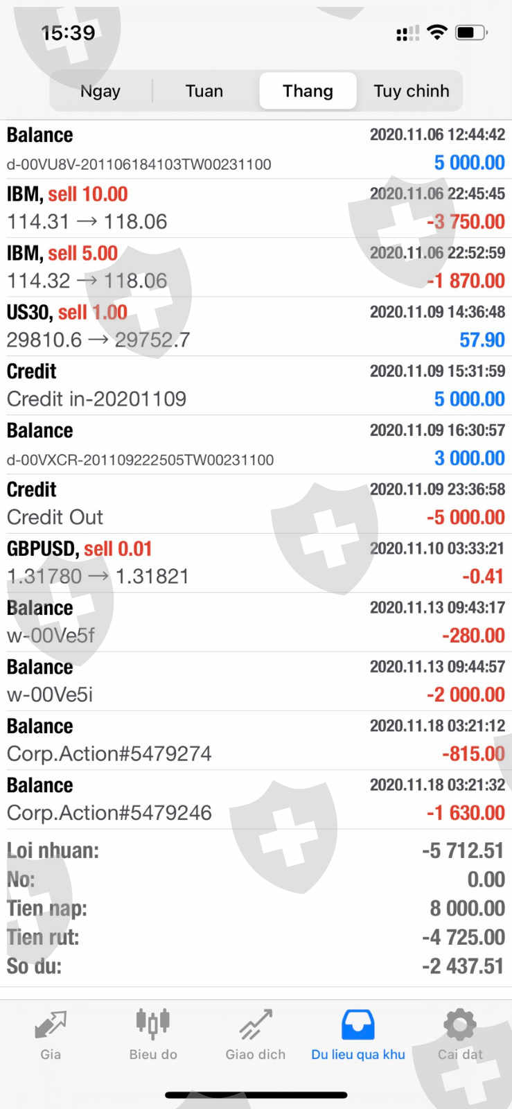 có giao dich các mã cổ phiếu, đến ngày 18/11 tự dưng sàn tự động trừ