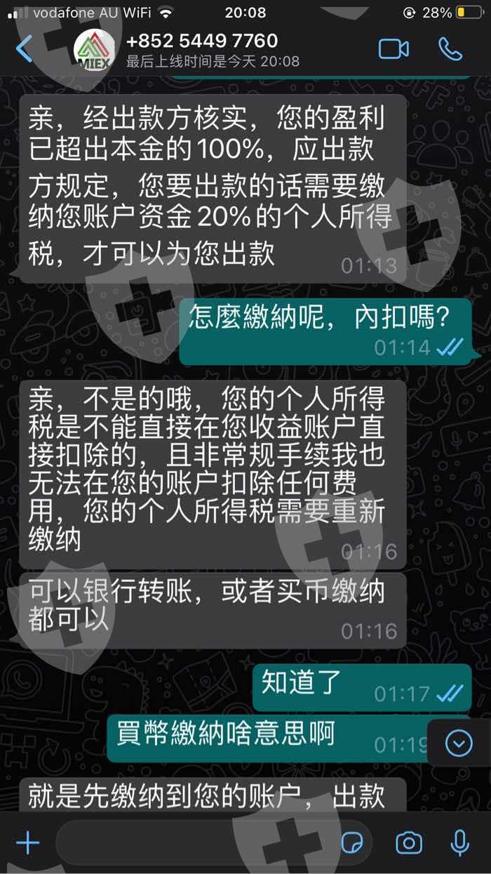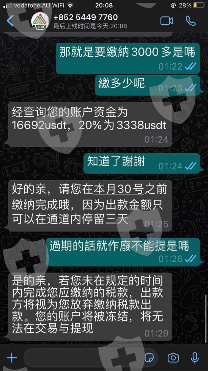 联系客服要出金,客服就说盈利超过本金,需要交百分之二十的个人所得税,期限三天,不交就封账号不能交易,完全是骗子平台