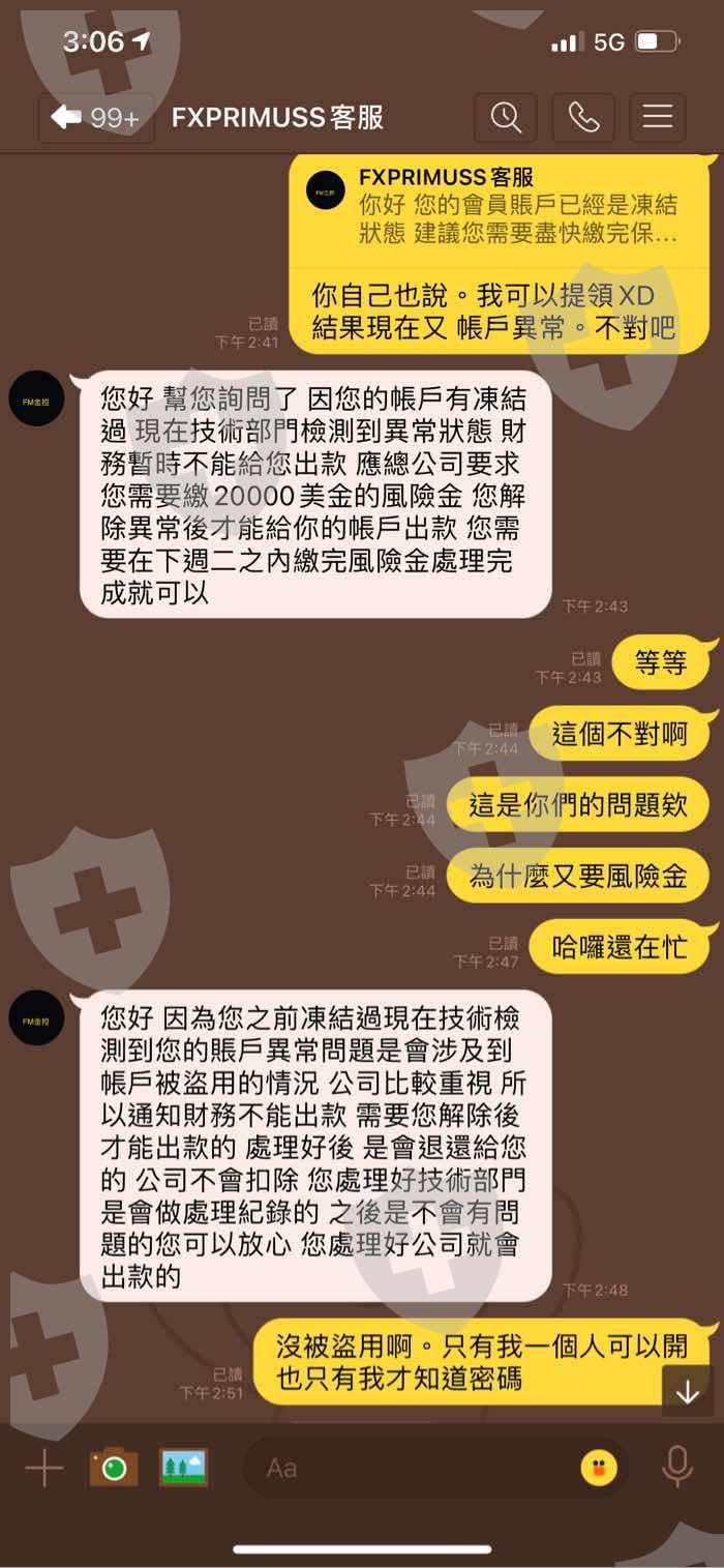一開始為了申請vip投入10000美元後來因自己手殘輸入錯帳戶 被系統凍結又在投入10000美金解凍以上事情處理完成後現在又跟我說因為您之前凍結過現在技術檢測到您的賬戶異常登錄問題是會涉及到帳戶被盜用的情況 您現在是需要處理解除完成 財務就可以正常出款給您需在付20000美金 做異常處理