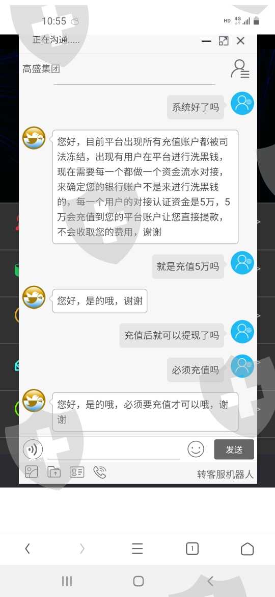 客服说有人洗黑钱,每个账户交5万资金认证金才能提现