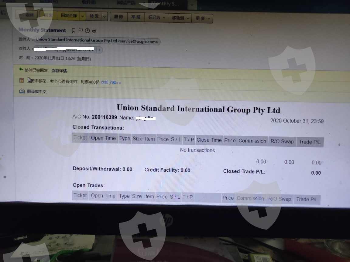 我(刘*)在USGFX联准的账户不能登陆了我因为曾经被坑还被骗过,正好在我用联准的平台时病了好几次,很长时间几乎没用,后来经常看几分钟就下,2020年的12月初突然不能登录账号了。2020年11月收到过联准的对账邮件,余额4945.30A/C No:200116389