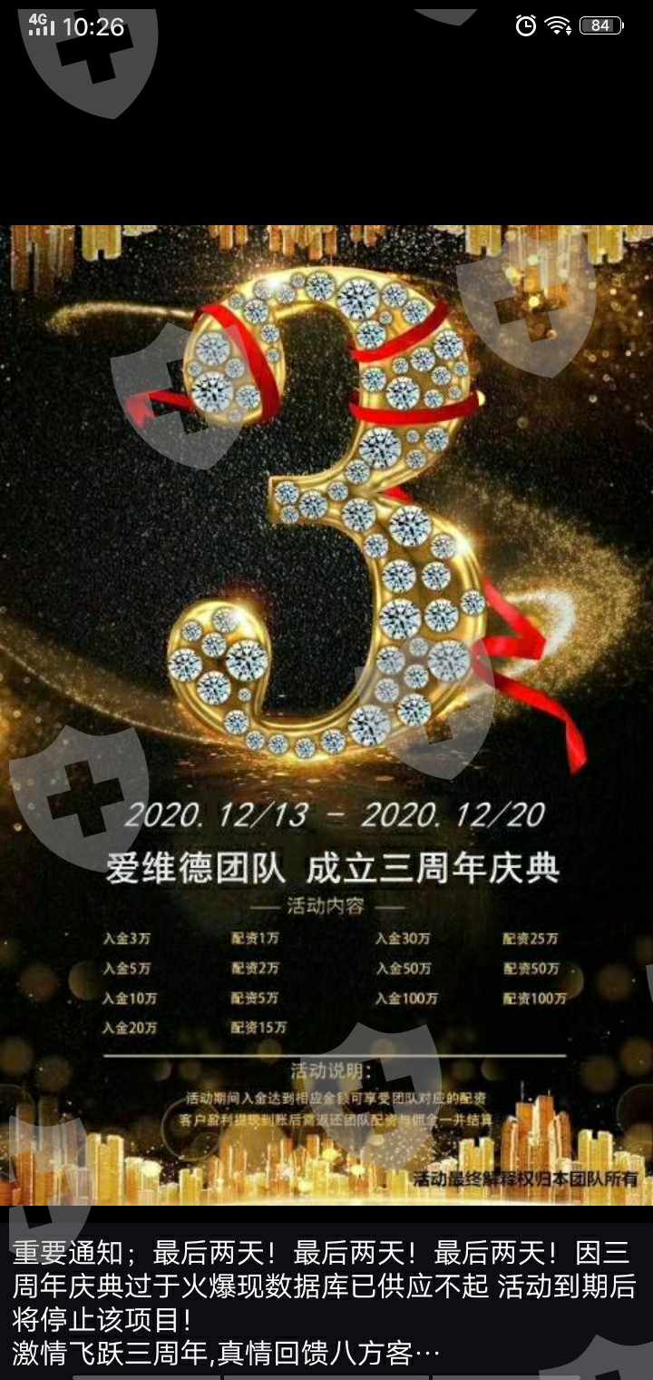 这是骗子说声称自己是爱维德团队的,专门带着客户在这个平台上抄外汇。因为银行卡输入有误,平台说导致系统异常,要求支付总金额的20%激活账户就能提现,激活后又说信用分只有80分,必须按10000元/分补足100分才能提现。我是一个宝妈,前前后后我总共充进去了61.4万,希望平台能给我一个说法,这些钱开都是我的救命钱啊。