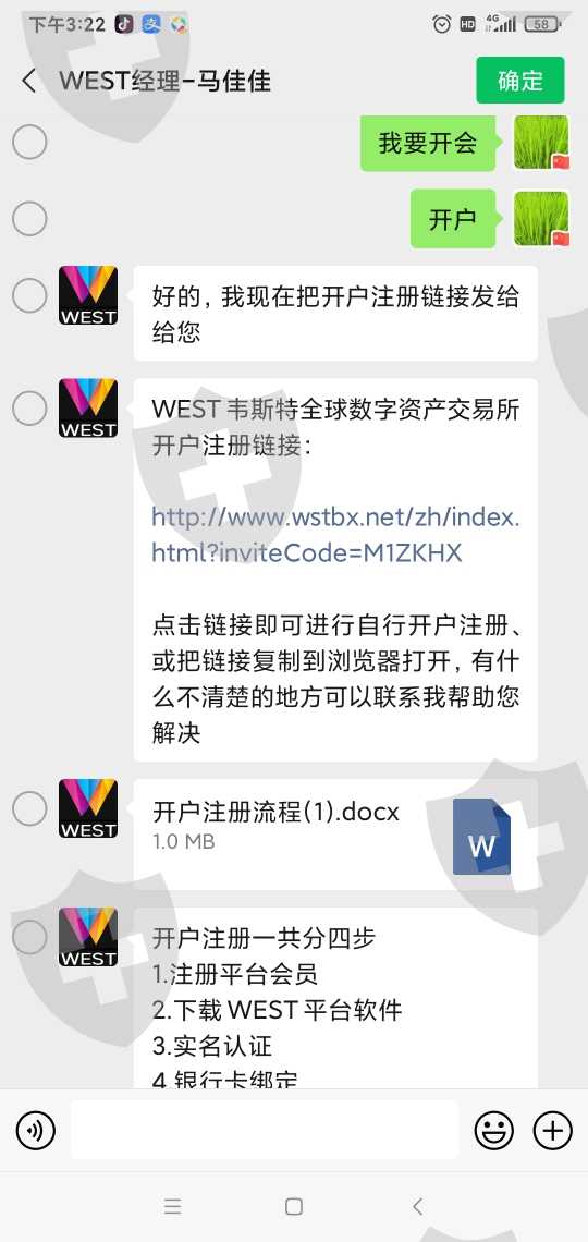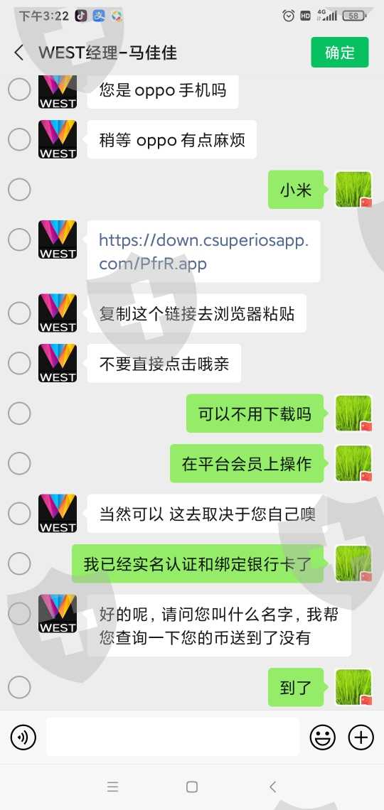 我之前在一个股票交流群,有老师每天讲解股票知识,并推荐股票购买时机和卖出时间,也通过几只股票获得了大家的认可,后来股市行情不好。老师说他认识国信证券及其他机构的人,推荐west数字货币交易平台,进行平台币打新,利润翻倍,前两个我未参与,担心受骗,可是群里很多人都在晒申购的打新币,获得了利润翻倍。后来我也参与了平台币hsi的打新申购,一共投入了4万多,解仓时间是12月20日晚上23点59分。平台上也可以看到,确实资金翻了好几倍,后来老师又讲west平台要发行自己的平台币,市场前景不可限量,要比目前平台上的行情都要好。让大家在12月17日,18日两天时间进行打新。后来我投入6万多,成功申购了1050枚,12月20日下午两点多,平台登录后,任何个人信息都看不到,网页也无法打开,客服及老师也都不回复信息。