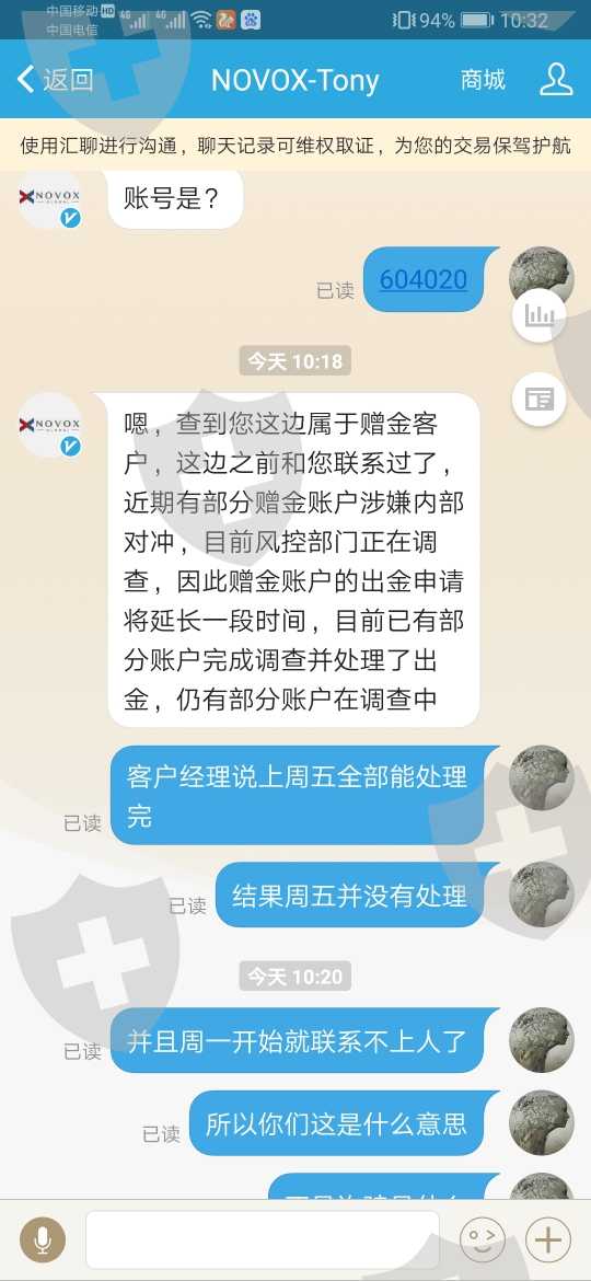 上周二申请出金的,客户经理承诺三个工作日可以出金,结果过了三个工作日,以后就联系不上了,再问官方客服就是遥遥无期的等待,找各种理由拖延!黑平台毕竟曝光,有同样情况的朋友一起报警,投诉!!!