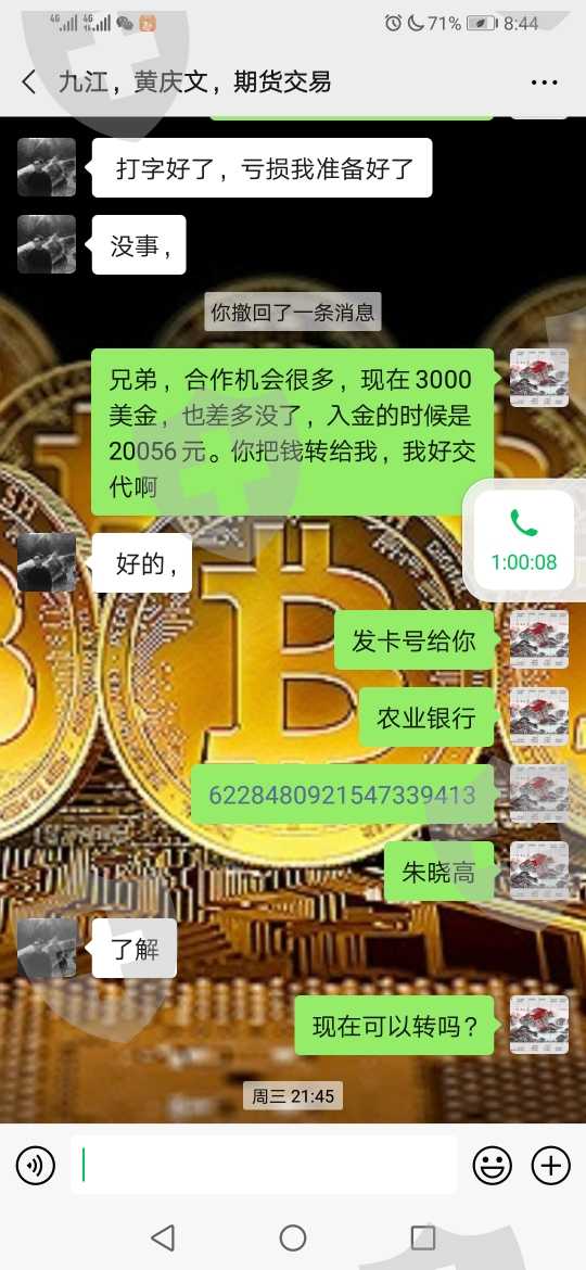 金融中国平台有代操做人员,给客户操作账户,把客户的资金亏完,平台有返佣给代操人,黄庆文就是骗子,金融中国一起骗客户钱。