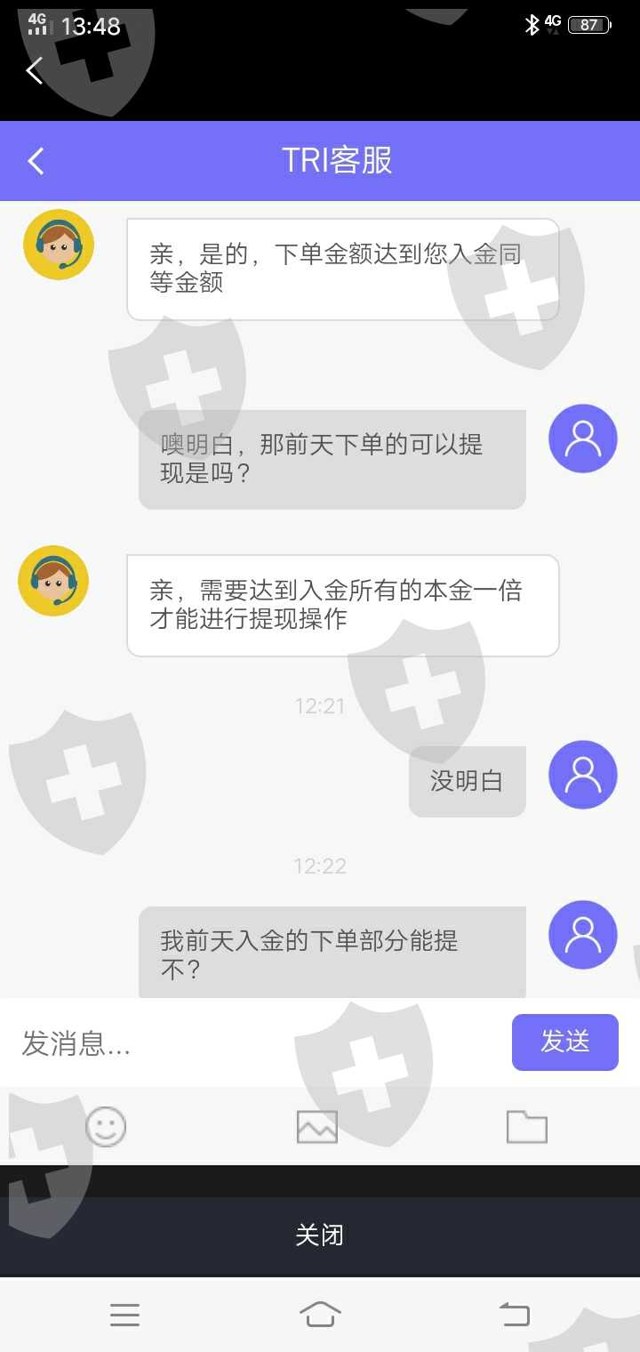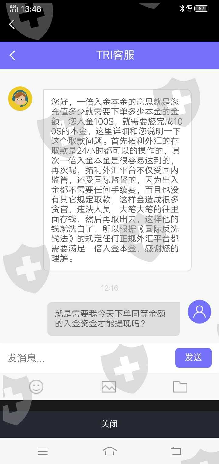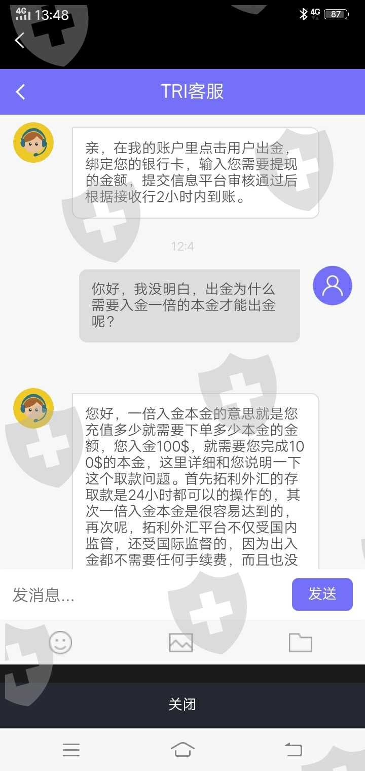 在拓利外汇里无法出金,说必须要一次性下单,充值多少金额就下单多少金额,结果就打不开APP了