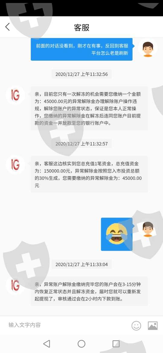 无法出金,资金冻结,客服说交金额的30%/,解凉金额45000元,这又是一个坑