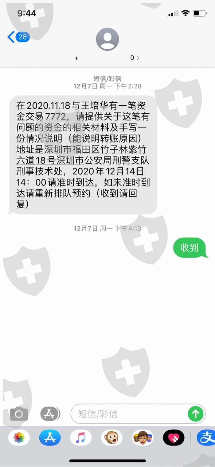 出金是一个叫王培华的账户给我打的款 当时被深圳反诈骗中心冻结 被刑警叫去做笔录,找姓韩的韩总他说不知道 不知道理德这个平台 ,认为我污蔑可以直接拨打发信人的电话认证是不是深圳刑警电话