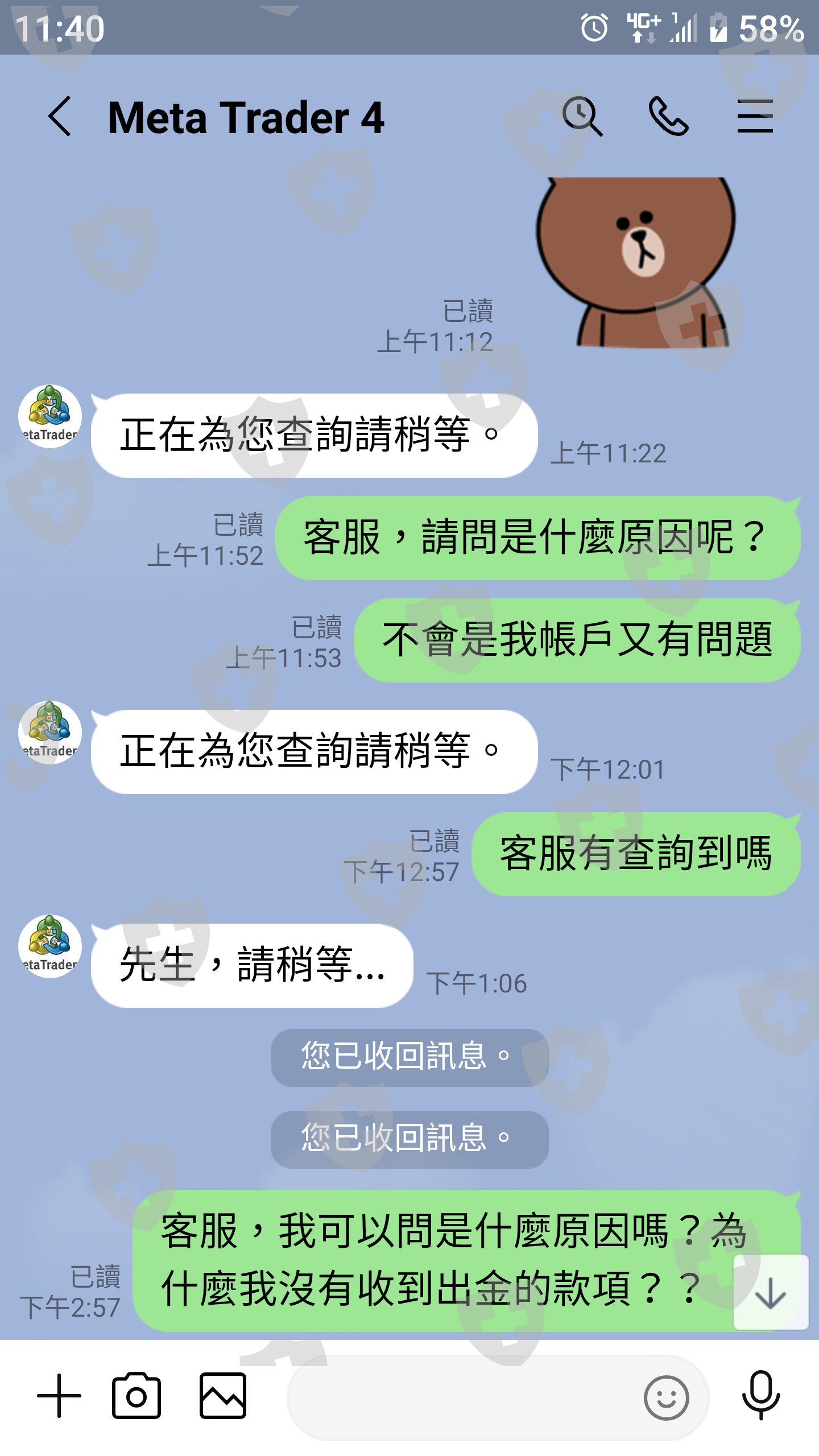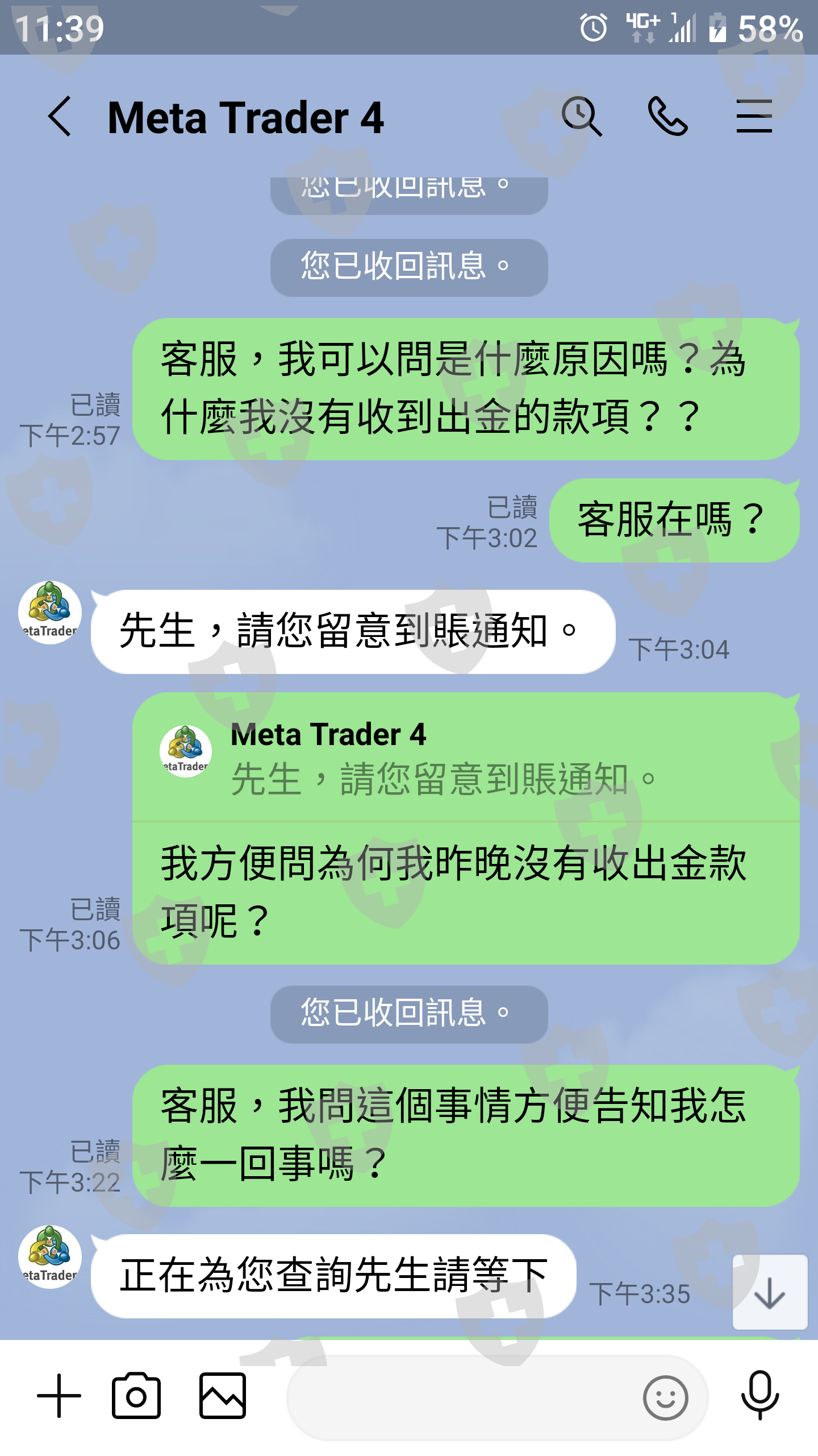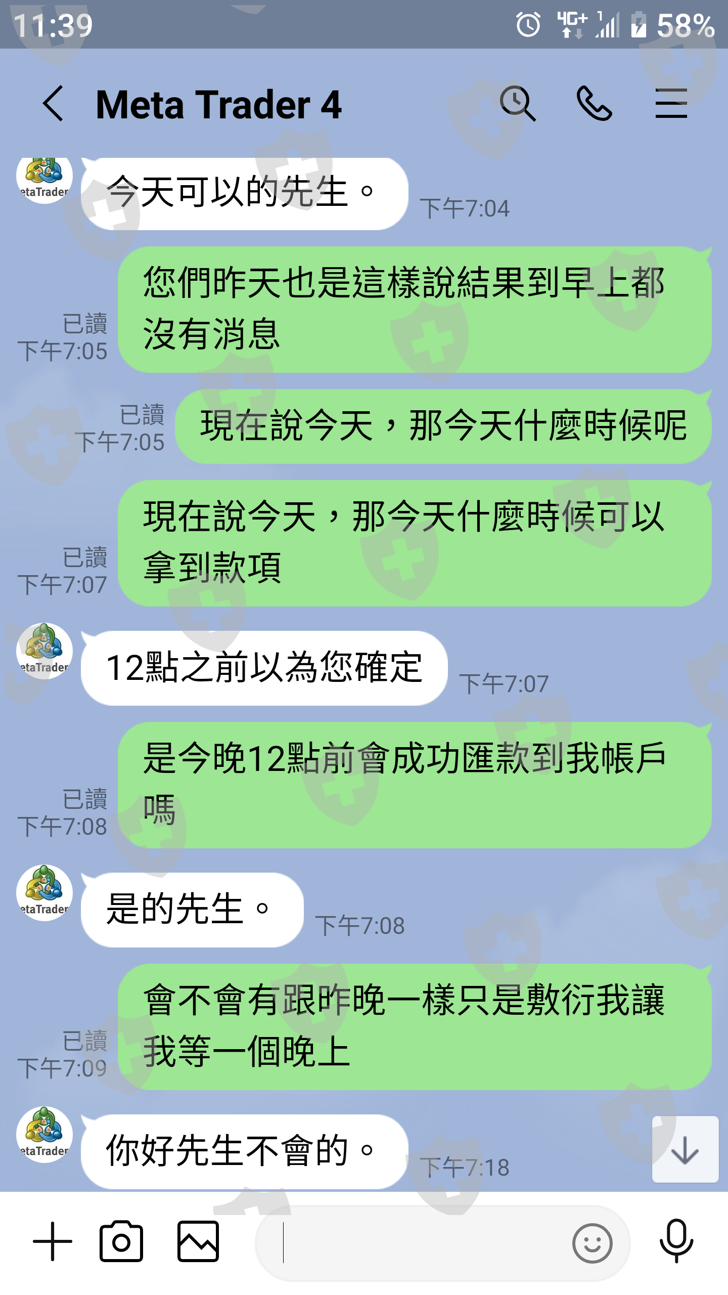 fortuneever此平台這兩天我出金款項都一直沒有收到,詢問他們卻說要我等待到款通知、耐心等待、今天晚上12點前一定會收到等等回應,我相信他們的話結果一個訊息都沒有收到