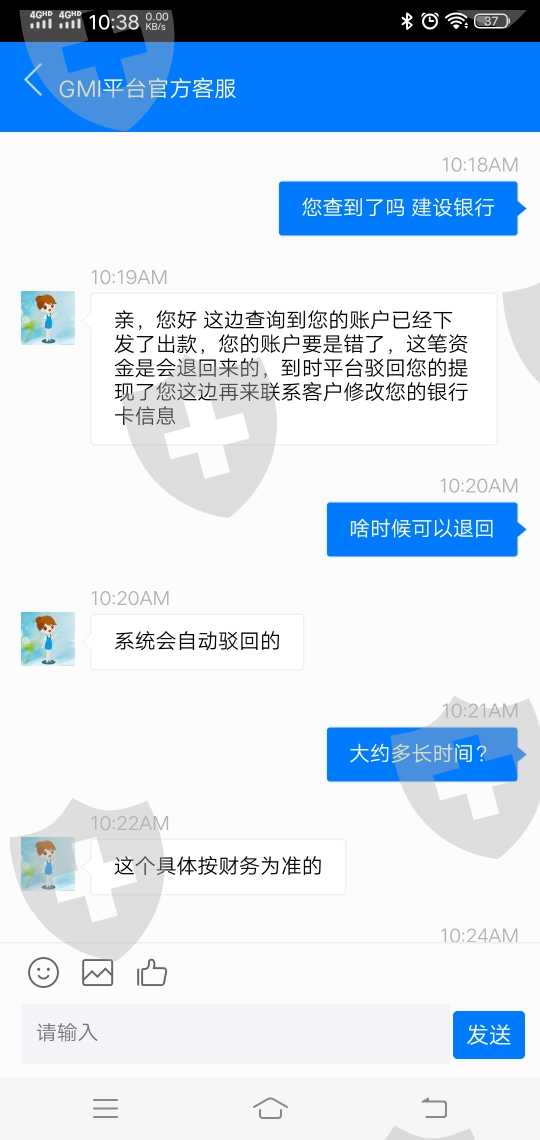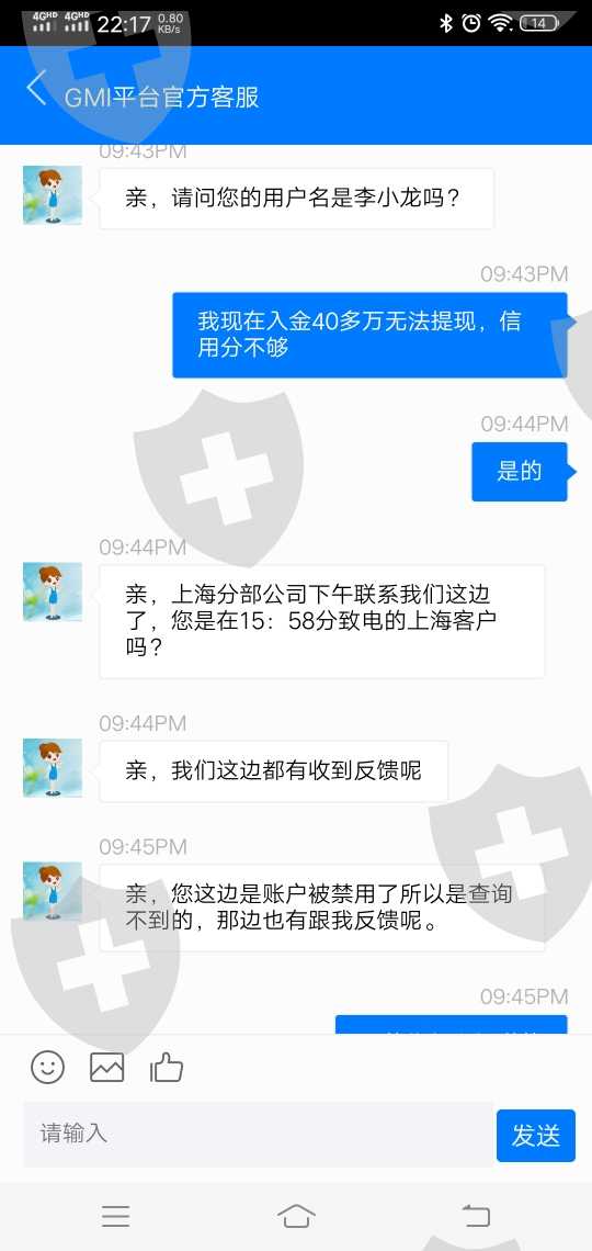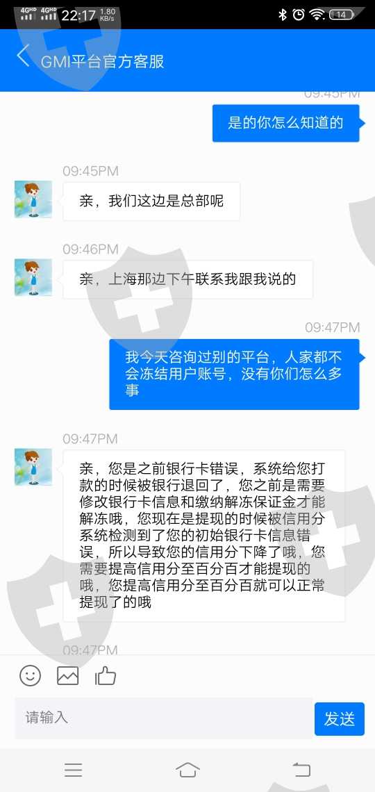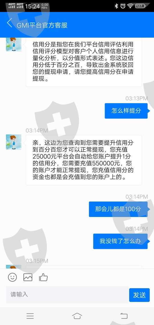 10月10号左右GMI公司以提现账户输错为理由不给出金,而且还的交保证金,手续费都交了信用分又不够还不能出金,买信用分1分25000,这就是诈骗,已骗我本金40多万了,快两月了不给处理,客服都联系不上了,求帮助,我已报警了下面看图有骗子的名字银行账户