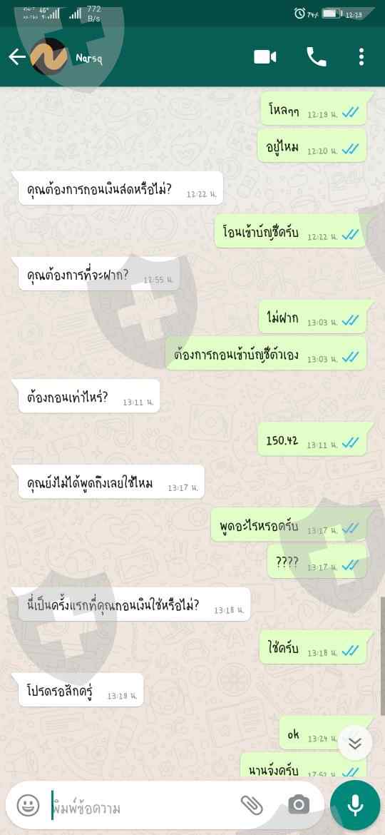 我在应用程序中遇到了一个热气腾腾的人。我认识这个人,他说他是中国人,住在泰国。我曾经只打电话和说一次,想听声音。他没有说清楚泰语像中国人一样大声说话我彼此认识了几天,他们告诉我我要存钱,要我交易黄金,对此我一无所知,这是什么,他们怎么教,直到我存入一些钱,这就是Krung Thai Bank。以Suchart Sae Jang先生的名义,交易时的确如此但是20年12月结束后,他们没有回答我,我将提款。如您所见