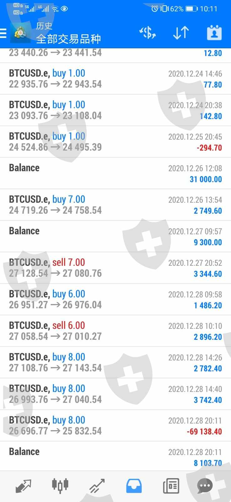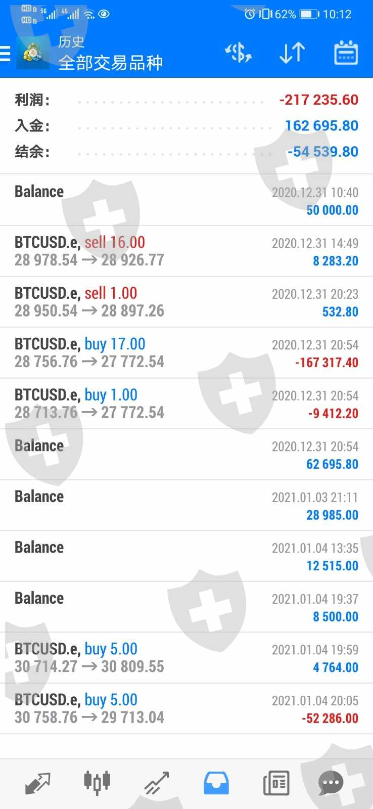 第二次人为操控:第一次爆仓后,在汪胜天及其助理的诱导下,继续追加资金,2020.12.31日20:50分在汪胜天的带领下以28756.76价格买入多单,20:54分再次以27772.54价格被强制爆仓,当时操作前账面余额117200多美元。