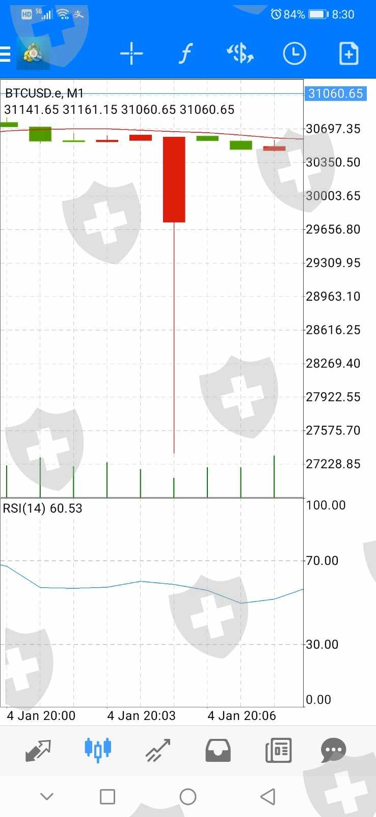 我在2020.12.22开始在汪胜天、龙海辰的诱导下WEINIAN平台上入金7239美金开始操作比特币(汇率6.9),之后在其引导及教唆操作下多次追加资金并爆仓操作几次后有亏损,过程如下:第一次人为操控:在其引诱下于2020.12.26追加资金后,在2020.12.28日20:09分在龙海辰的带领下以26696.77价格买入多单,20:10被以25832.54价格强制瞬间爆仓,后在正规MT4平台查当时的交易情况是指数最多跌至25838.46就反弹向上最终以27068.4收盘,故当时的操作系人为操控。