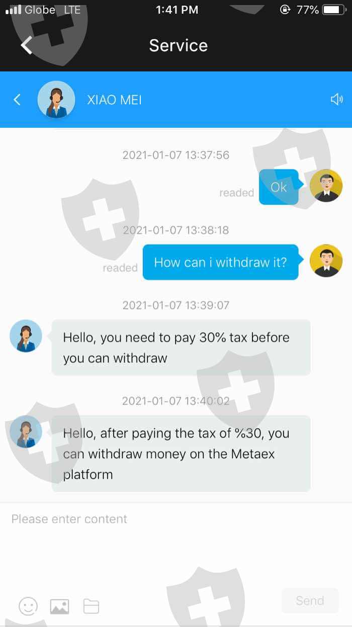 平台MetaEX要求我在提款前要缴纳提款的30%税金。