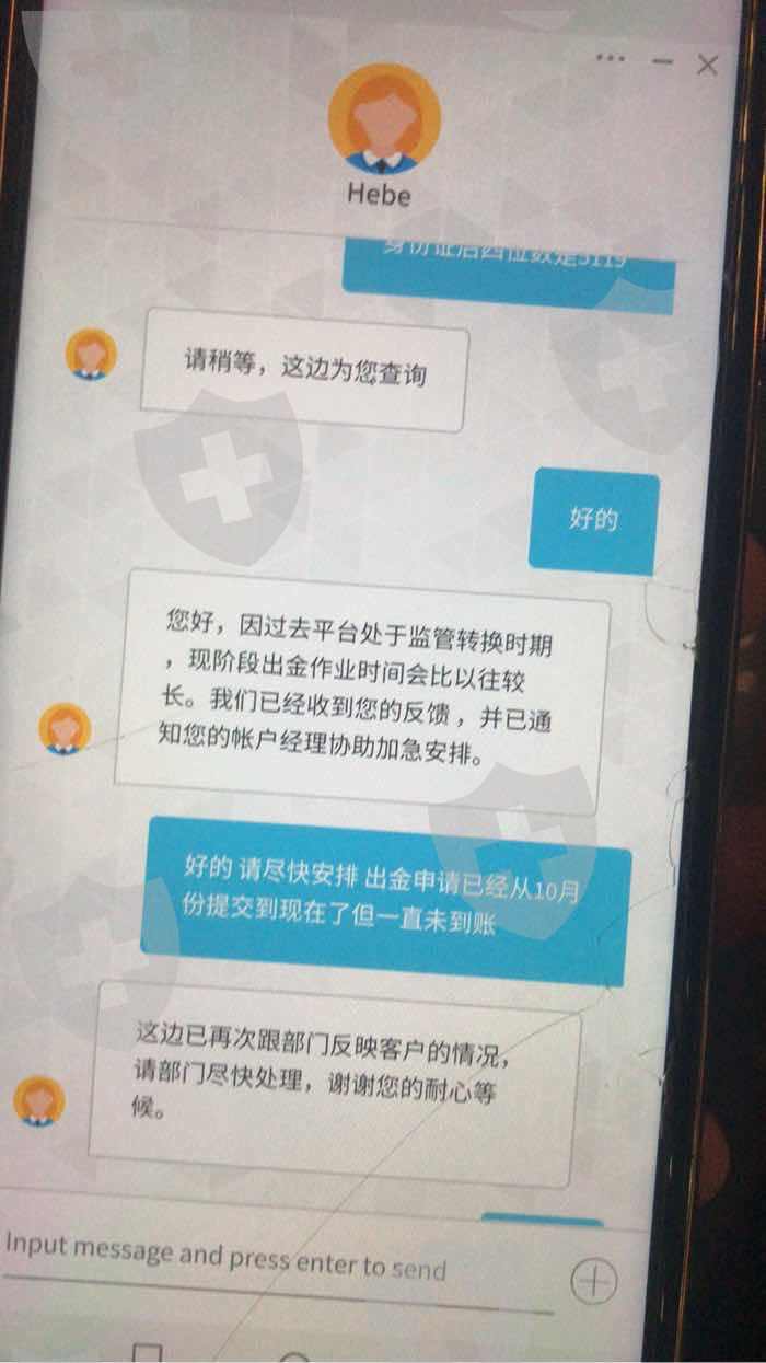 两个账户十月份提交的出金到现在一直未到账 还是两笔小额度的出金 多次联系官方客服与账户经理却都没用 资金一直未到账 特么的 就这么一点却一直不让出