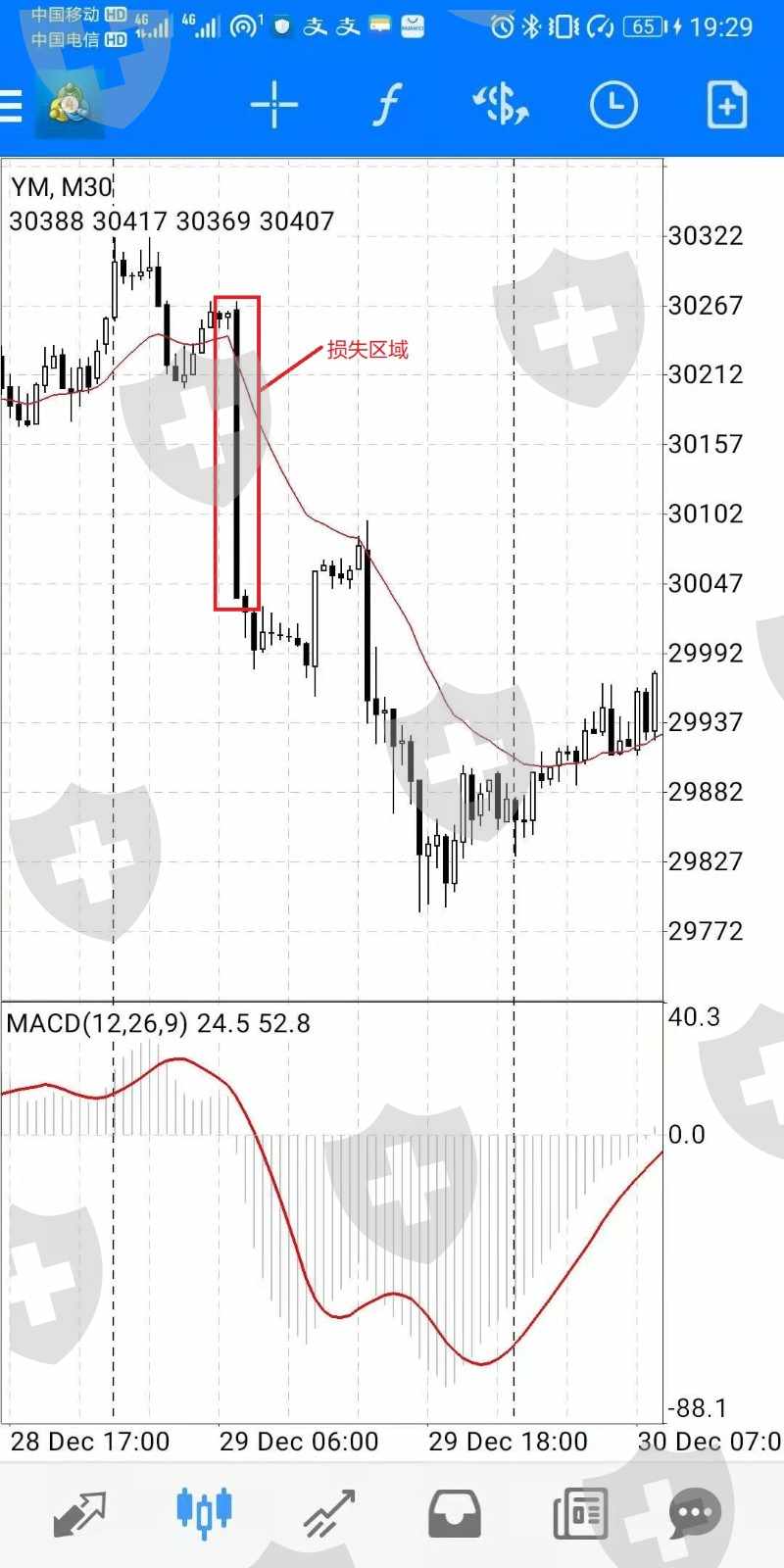 购买YM指数出现异常下跌,与实际不符,从而导致出现异常亏损。