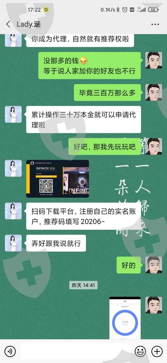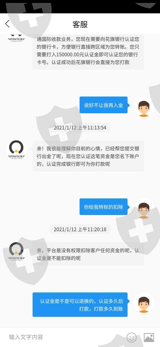 假英诺平台,微信好友发的朋友圈,说有老师带能盈利8到12倍,盈利提现之后收取佣金。入金7万,盈利70万,最后提现平台说银行账户输错了,我记得我检查了好些遍,应该平台在后台修改了数据。然后说要入金112800的识别金才能修改信息,入金之后提现通过,最后又说钱在花旗银行,我的银行卡没有开通国际收款业务,需要15万的认证金,这是完全的诈骗,先后入金182800,最终也无法提现,平台还说如果不交认证金,钱将捐给红十字基金会。诈骗团伙啊,有没有同套路被骗的
