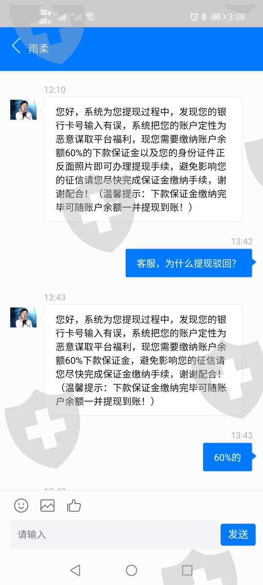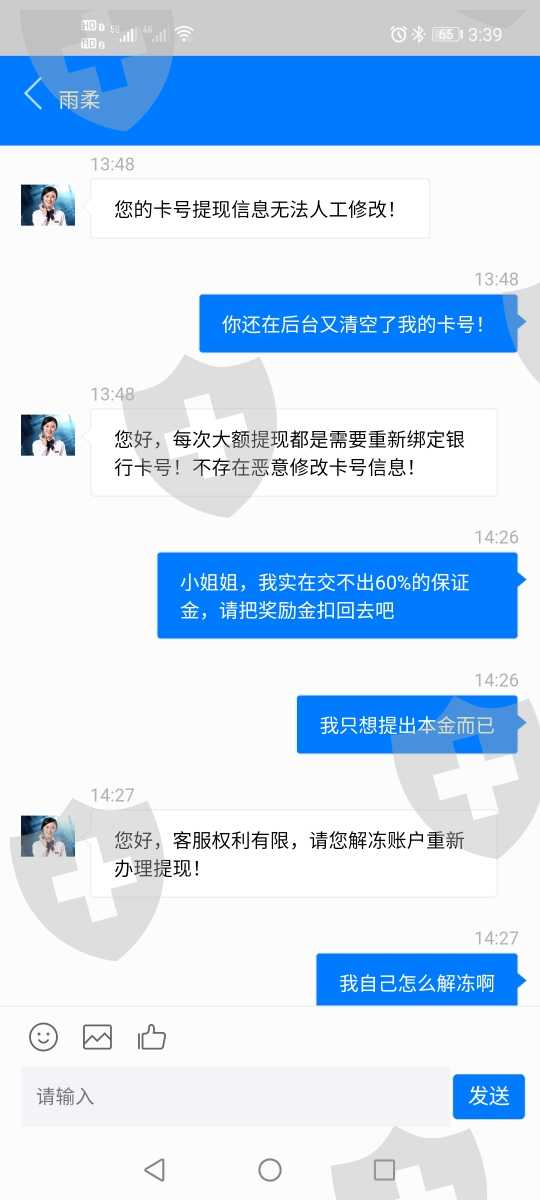 请强烈进行监管!明明卡号没有问题,都提现过两次小金额的,就是说卡号错误,账户冻结,提现驳回。现在还一定要交保证金才给解冻,还拿个人征信来威胁。我怀疑交了保证金,还会有别的理由,不让提现。我先报警了,交不出钱