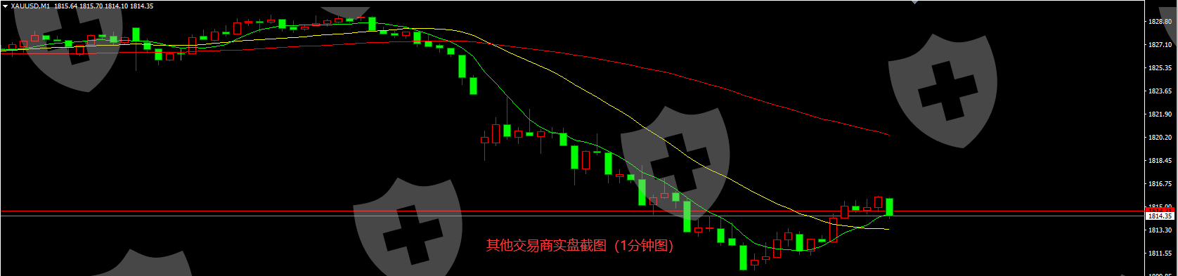 1、北京时间2021年1月18日早上7点35分左右,TICKMILL突然滑点20多个大点,导致我的锁仓单无法成交,最后成交于1808.99,比预定点位1823.26下降14.27个大点;直接导致账户爆仓。2、此时看其他平台并没有这种滑点现象,对比下图,请求解决处理