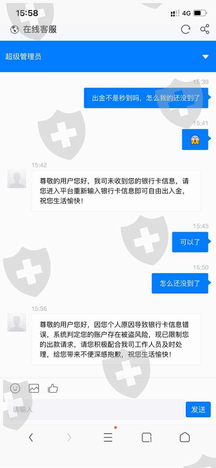 出金的时候告诉你出金密码错误,账号资金冻结,需要交保证金,交完自由出入金,交完后又告诉你需要账户余额的一倍流水,最后又告诉你升级白金会员,要是没钱就自己下注流水一倍的……