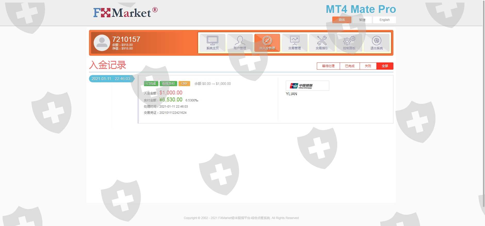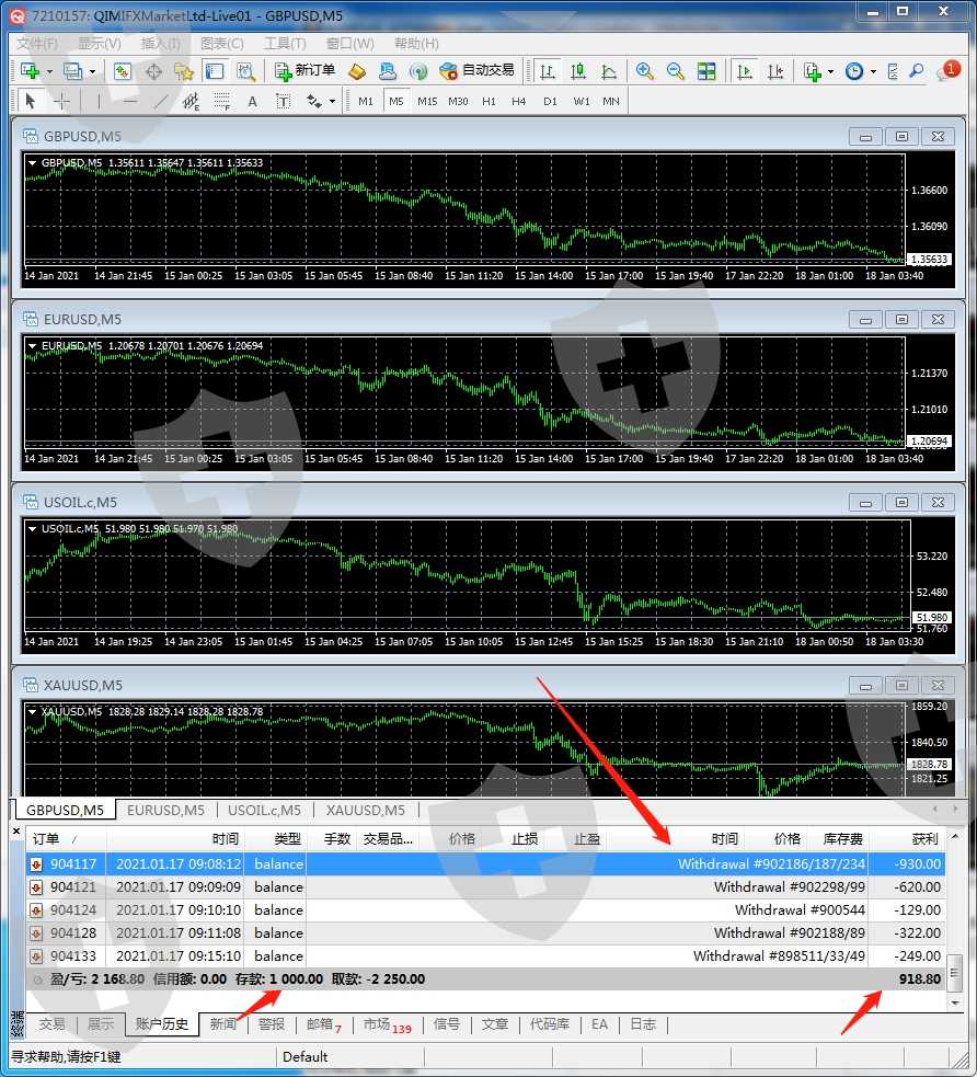 我充了1000美金在该平台开仓做单,星期天的时候我登mt4发现把我的盈利全部扣了,现在账户也给我封了,另外还扣除了我的本金,并且没有收到任何信息,就这么平白无故的把我账号封了,这不是典型的欺诈行为吗,盈利了就封号,还吞本金。典型黑平台,连个专门对接的市场经理都没有,有什么事都是上官网找客服,一点都不正规,不知道哪里来的骗子,希望广大汇友看到我的曝光一定要谨慎,不要在被骗了