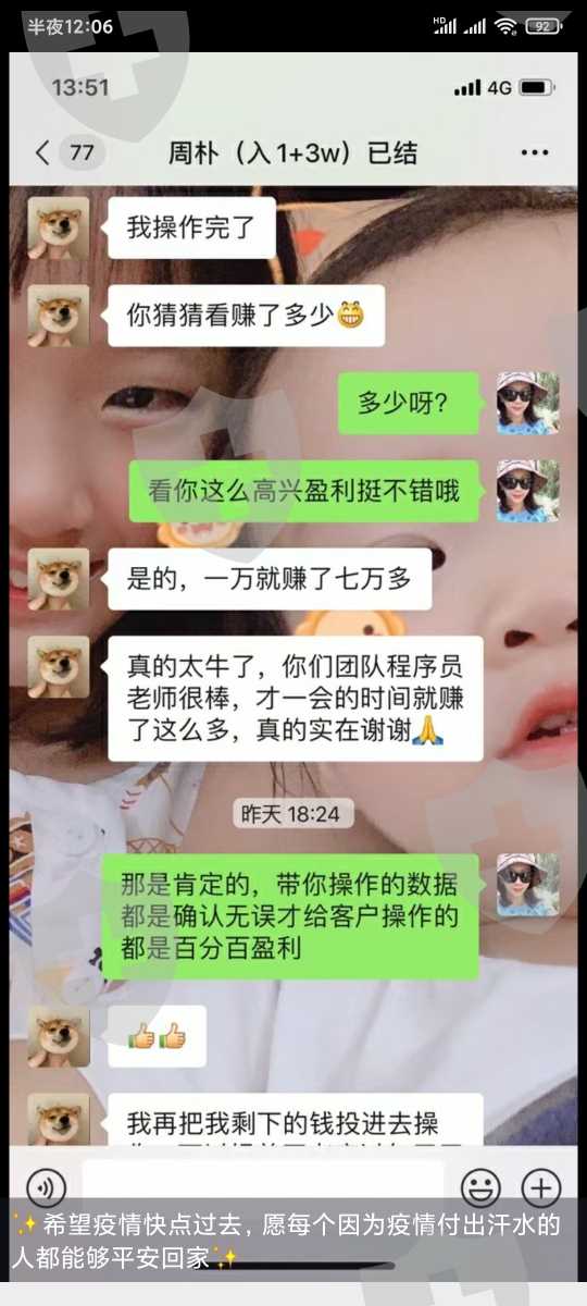 微信加了一个好友,天天在朋友圈发投资盈利的聊天记录,诱惑我投资 ,投资完了各种理由不给我提现。让我一直充钱,我要曝光你。