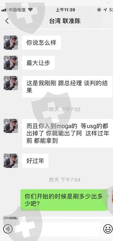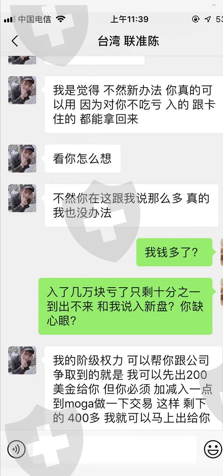 去年我和大部分投资者一样 出不了金 去年十一月份业务经理和我说让我做单刷佣金 百分百能出 1/3天到账 我3400多美金确实做了 做了680美金的佣金 出金两个月出不出来 业务员现在让我入MOGA才给我出USG 我想问下不是同一个老板同一个资金池能统一结算 一个坑接一个坑 让我出两百 入一千MOGA USG的臭名昭著 我是不敢了 现在国内办事处扯完都是琉璃棒子在做 基本毫无诚信二字 不要让跟多的受害者受骗