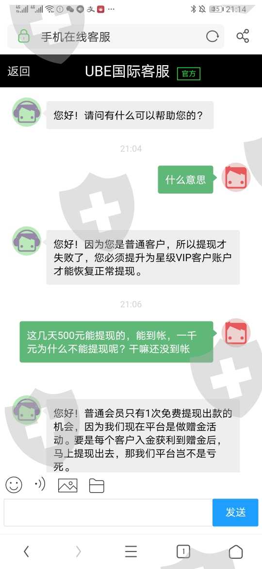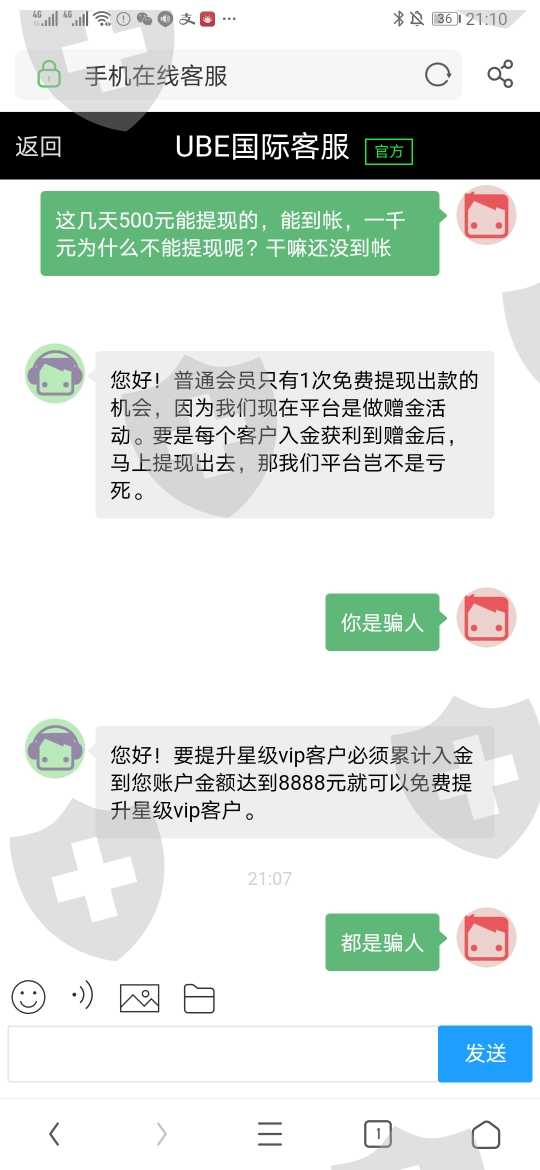 昨晚十点多充值一千元入金以后,赚了81元盈利,总共1081.6元,本来是全部提现的,但现在下午四点多要提现,一直还没到帐,我觉得不对劲的,这个平台有问题,我问了客服员说我不是vip会员,要升级vip会员才能提现,要达到金额8888元以后免费提现的,这个平台是骗人,要求退款给我一千元好了