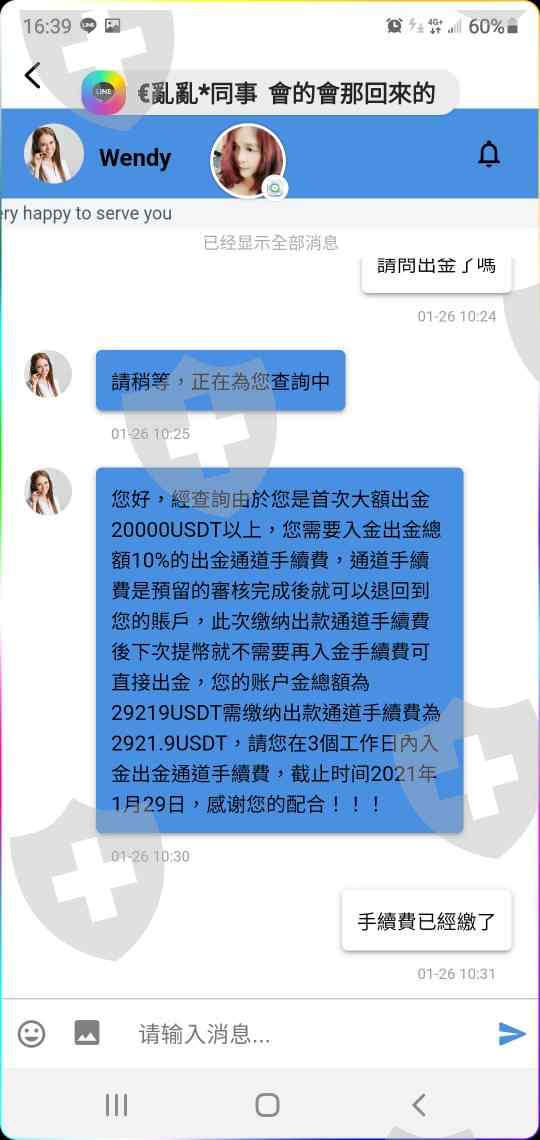 一直在騙錢沒辦法出金,一下要稅金,一下又要保證金,又一下要手續費,在來又說超過多少又要手續費