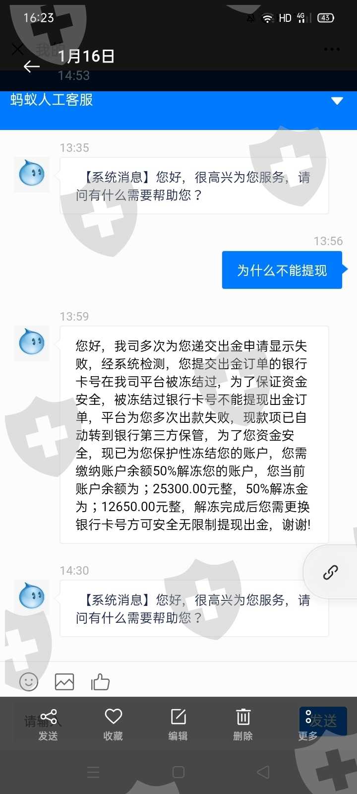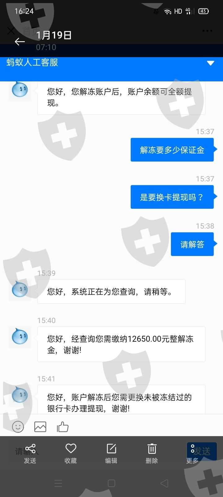 在陌陌APP上认识一网友,聊了有一段时间,说要带我赚钱,在他的诉说下接触了外汇(货币交易)旗下的蚂蚁财富,刚开始还可以提现得,后来又从新绑定了银行卡,不小心填错银行卡卡名称,说冻结了,要交同等金额度的保证金才能提现,鬼使神差的我又交了12650.交了保证金后我提现时,蚂蚁财富里的智能客服说冻结的卡不能提现了,要换卡才能提现,又得交百分之五十的保证金才能全额提现,我感觉好像被骗了,