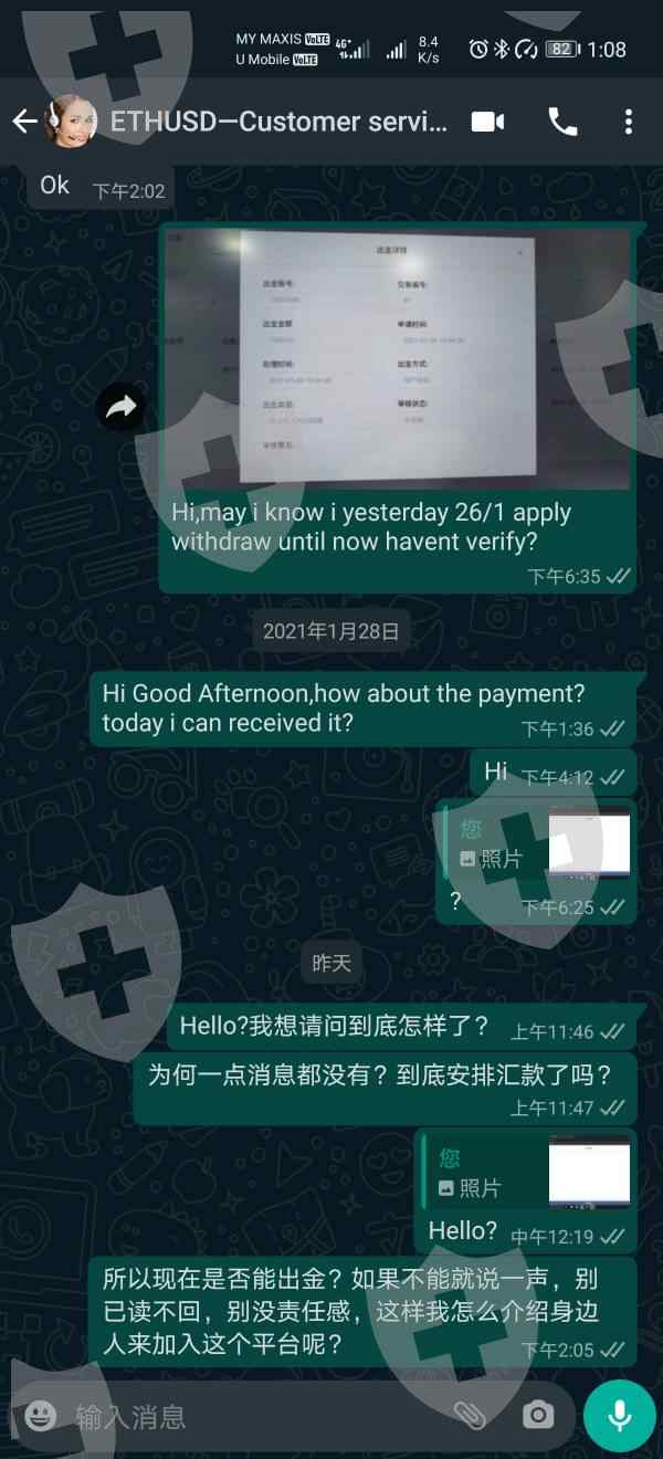 账户获利时想出金提现,客服承诺当天会汇款,等了几天也没消息,联系客服却联系不上,已读不回!黑平台!