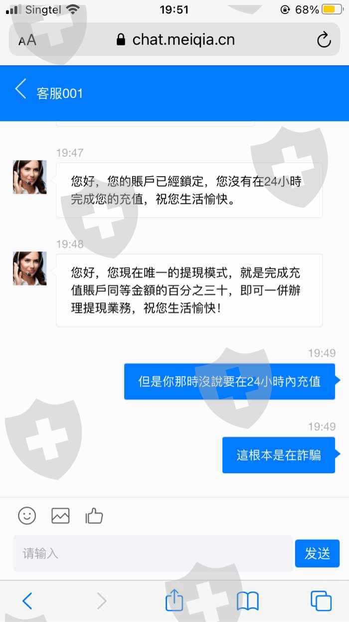 在社交軟件認識一個男生,聊了一陣子之後說可以帶我用黃金賺錢。想嘗試看看,自己充值之後,對方也帶我賺了兩次。因為一直遊說說要一次過賺大錢,對方也願意幫我充值,之後說剛好平台有活動,就是那種話充值多少就會送彩金,可是我沒去預約。之後要把錢提出來,客服說因為多帳戶充值要給1萬美金保證金,之後就能提現。對方出了7550,我出了2450。要去提現的時候說要給688彩金,可是我都沒去預約,也沒領過彩金。對方說就先充值進去,一定拿得出。我開始懷疑了,但是還是去嘗試。客服也說通過了立馬提現,要隔天中午再去提現。隔天去提現,可以做流水不然就充值百分之三十。可是過後再去確認,只說唯一辦法是充值。呵呵。果然是騙局。放著一天不理再去問客服,說帳號被鎖,趕快完成充值。看到有人介紹onoka千千萬萬別相信,都是騙子!