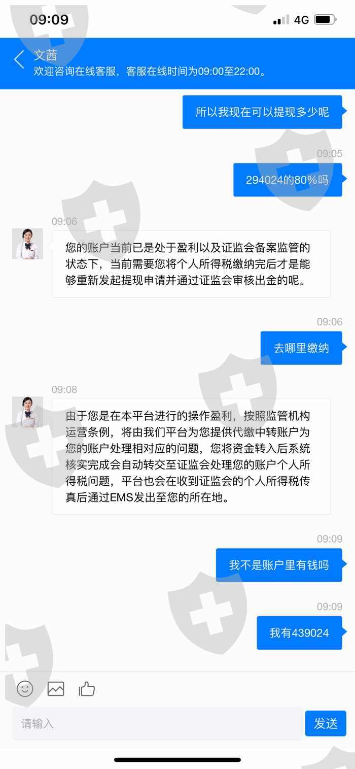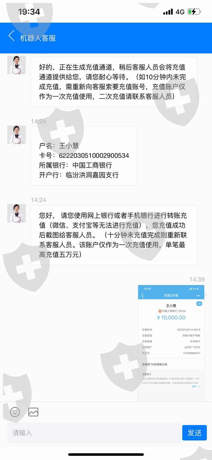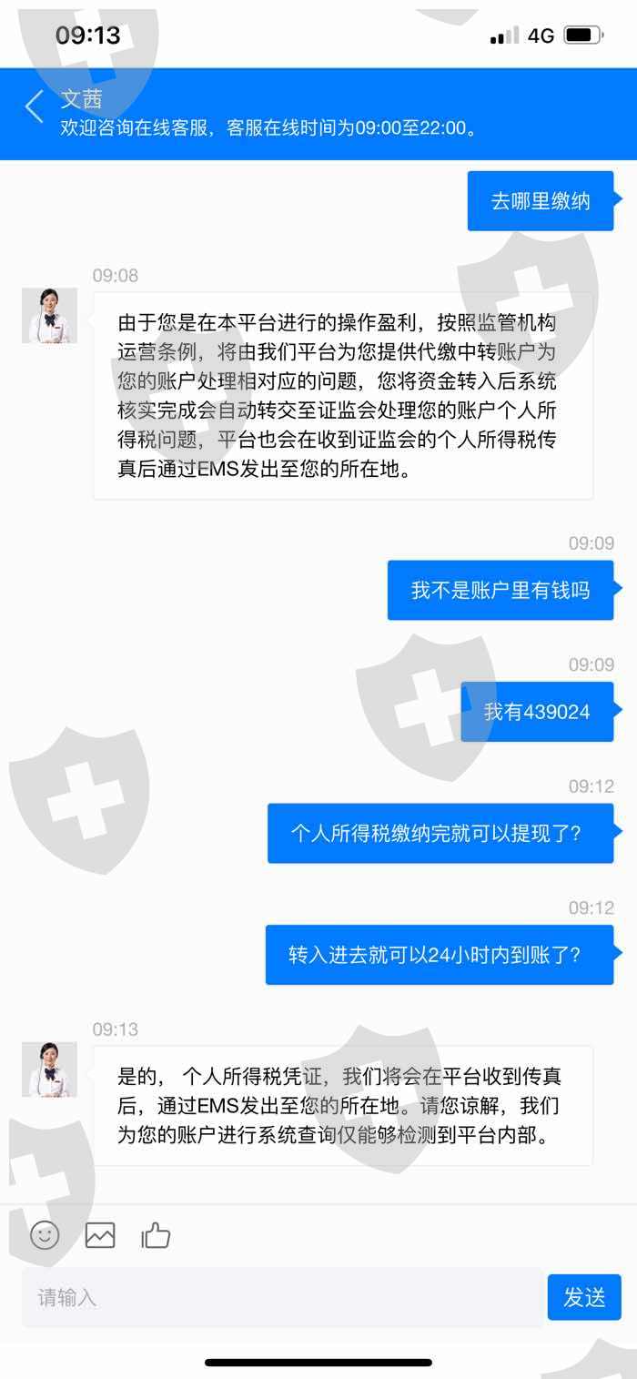 这个人给我店里打电话加了我的微信,然后开始告诉我她的团队是怎么操作怎么盈利的,我一时轻信,投了3w到平台,但是一到提现的时候客服就以各种理由要我再进行充值,反复几次就是不能提现,希望大家引以为戒!目前我已报警,希望能通过法律手段维护自己的权益!也希望天眼能给我一点帮助!谢谢!