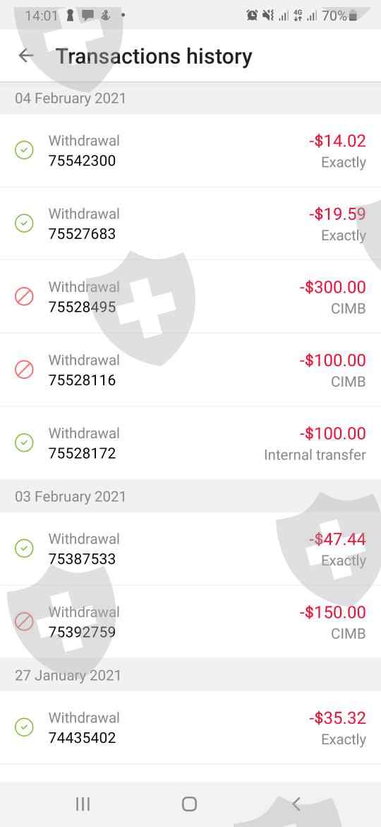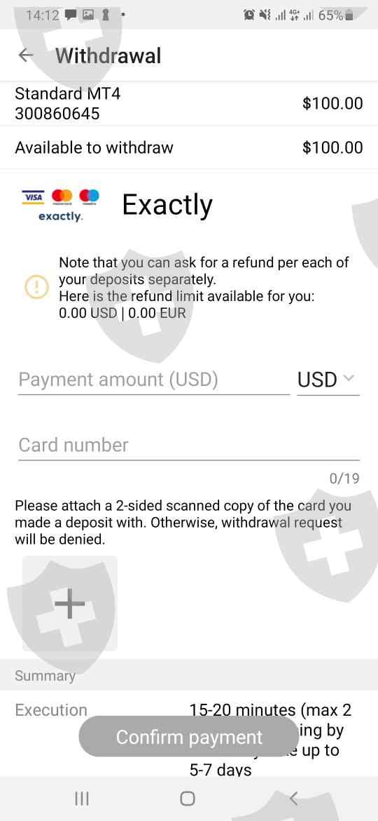 我们很难通过自己的选择来出金。现在只能使用EXACTLY提款。.我正在使用USD提款。每次交易的费用是2欧元。我无法使用我喜欢的银行提款。他们限制提款n,所以佣金实在是太荒谬了。经过一些撤回。我甚至不能提取我自己钱的一分钱