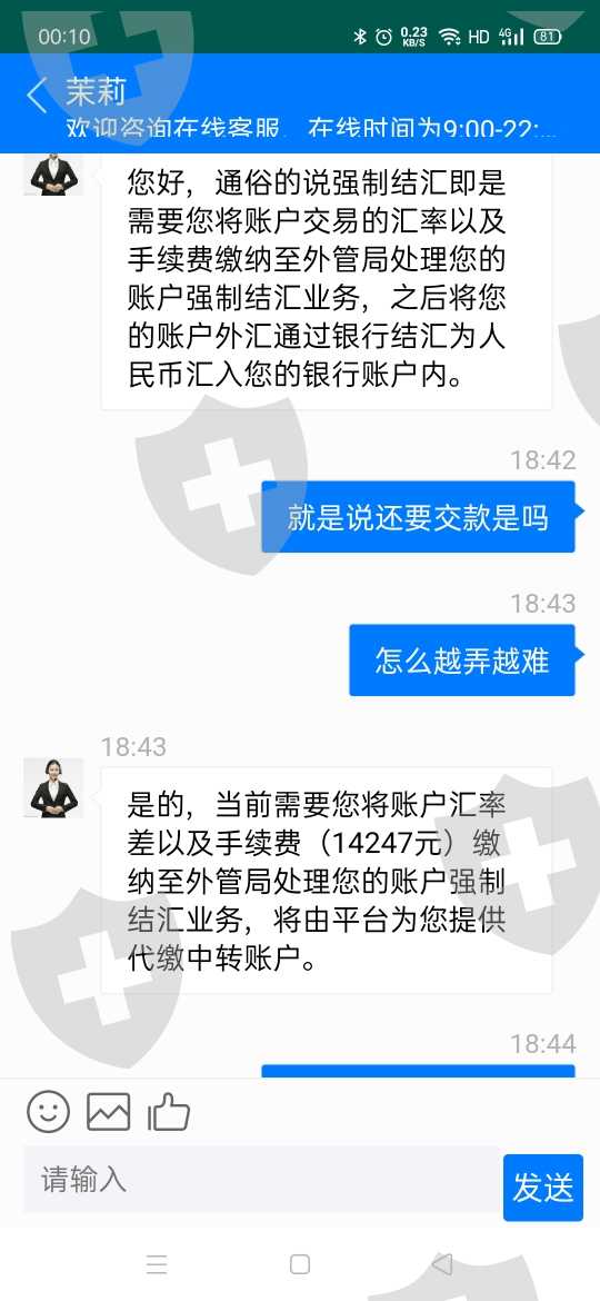 无法出金客服总是也各理让我交钱,钱不够