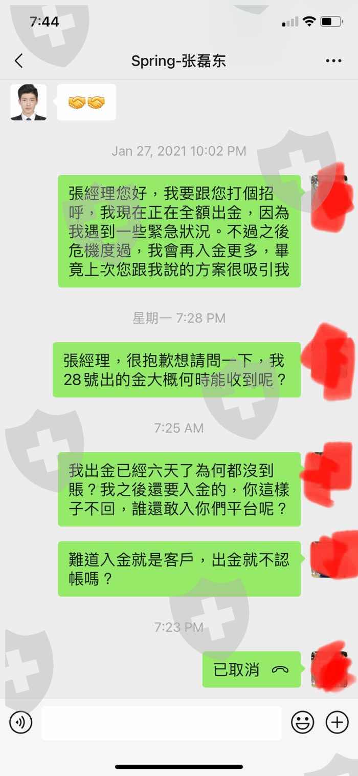 从1/27出金到现在没有收到,客服不回答。 骗子