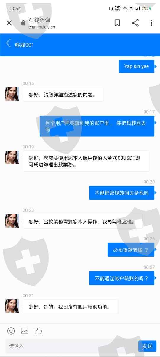 之前认识这个人,说什么行情好 用尽所有方式让我拿到钱投进去,让我贷款,卖车,和老板朋友借钱。之后我说没有办法更多的钱,他就说我本金太少,容易有波动然后进钱可以拿彩金。拒绝了好多次,之后一直怂恿说他帮我进钱,然后可以马上提现出来了。也是拒绝了好多次,之后他也没通知一声就把钱进了之后客服就说因为那笔钱不是我进的,所以我没办法提现了。之后让我筹钱让提现出来 筹了一千多没办法他说剩下的他筹,之后又一直很多问题说转账不到 ,户口被冻结,之后直接拉黑我了。创造了很多账号私信他,他都拉黑,删除评论。这个照片估计也不是他本人。有谁也是遇到这个人吗?可以电邮我 limjen****5@gmail.com