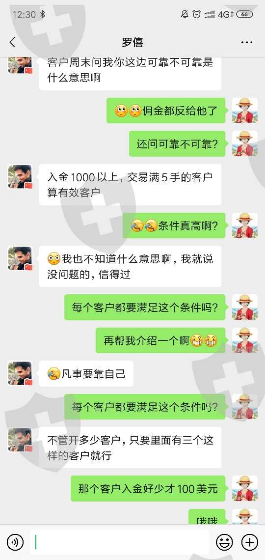 客户经理让我做代理,然后我注册了代理账户。但是在没有给我完全解释清楚代理规则的情况下,给我介绍了一个客户,而且这个客户是要求代理返佣的。产生的佣金确实在平台能看到,但是不能出金。客服说我不满足3个客户入金1000美元并交易5手的硬性条件。当时客户经理并没有跟我说清楚这一点啊。现在造成了,我自己掏钱给我的客户返佣了,但是平台给我的佣金我取不出来,没赚到钱,我还亏钱了。我确实也想去给acy拉客户,但是有些人听到是acy果断拒绝,原因无一例外是疯传的无法出金时间。