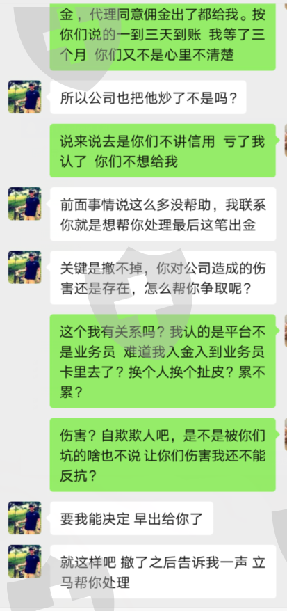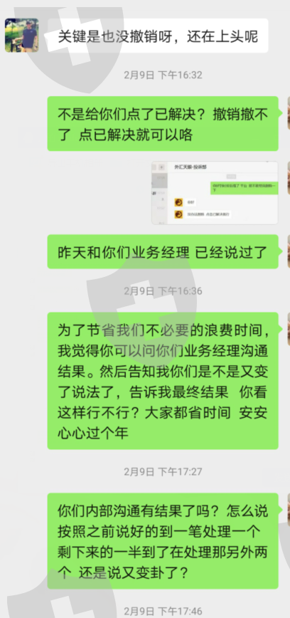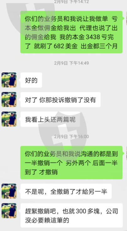业务员诈骗完本金 已经沟通好点已解决 给我出金了 猛地又换了一个业务员 一口咬死 删除投诉才给出金 删除投诉在找他 至今冷处理 黑盘 黑的好友底气啊 默默地问一下 这个年过的可安心?