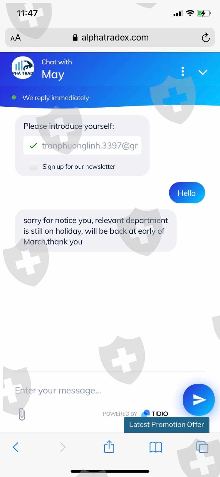 Alpha tradex平台不允许客户提款,交易所提供了愚蠢的理由来争取时间。出于某种原因,地板何时仍在春节假期里很难理解。今年年初真倒霉。