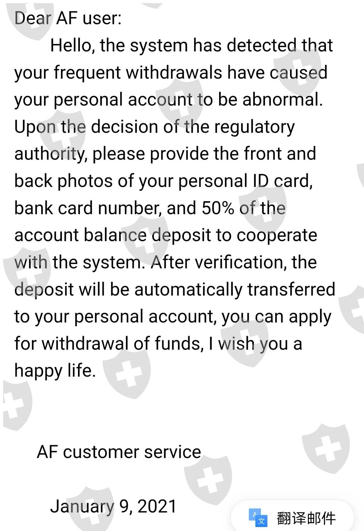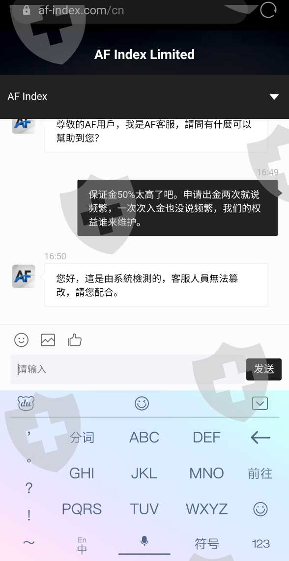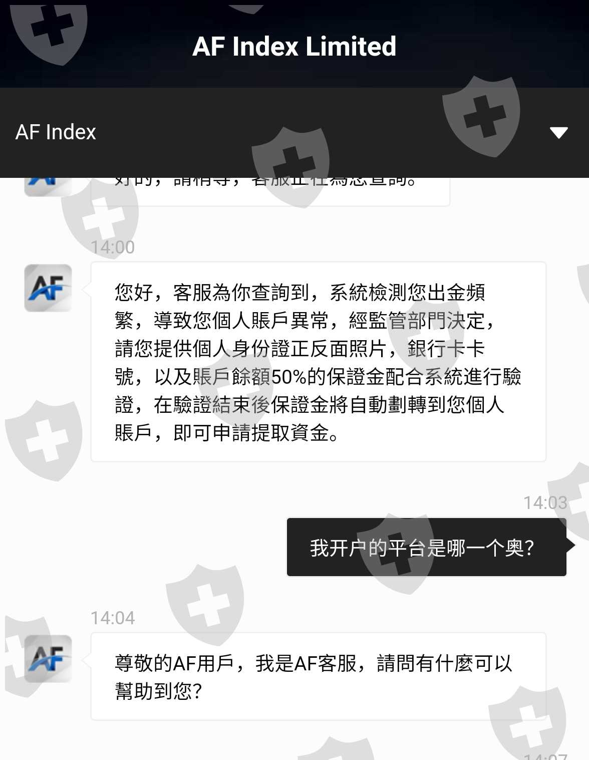 无法出金,黑平台。instagram搭讪,诱导去AFindex网址入金,阻止出金。申请出金说出金频繁。缴纳余额50%保证金。