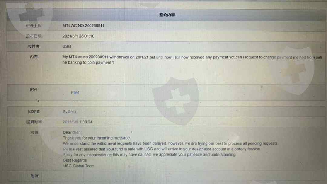1月到现在音迅全无,问客服和照会10几20次,答案是有答等于沒有答! 会加快处理,会注意你的Case,会优先处理等等答案。超过1个月还不能出金,这是什么道理