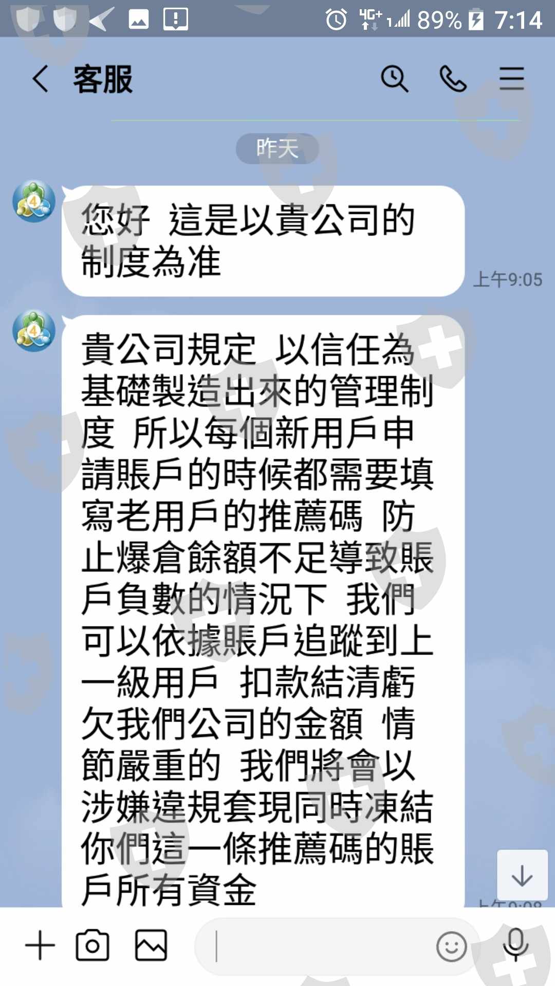 毫無保障的弱小投資交易者,尤其是推薦人因為貴公司規定您要負連帶責任,完全被動任劵商宰割。劵商原本做法要直接從推薦人帳戶扣款,又翻牌改成凍結推薦人帳戶不給出金、不給出金、不給出金,理由是推薦的下級帳戶爆倉有欠款。(爆倉仍有爭議未解決)