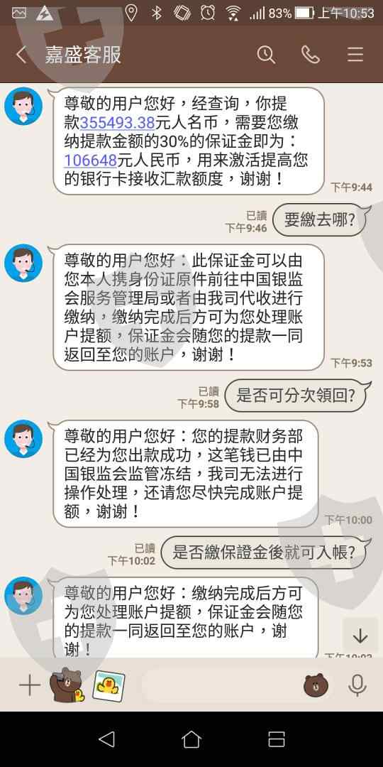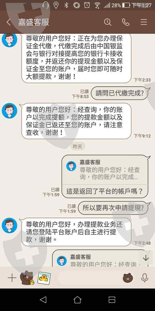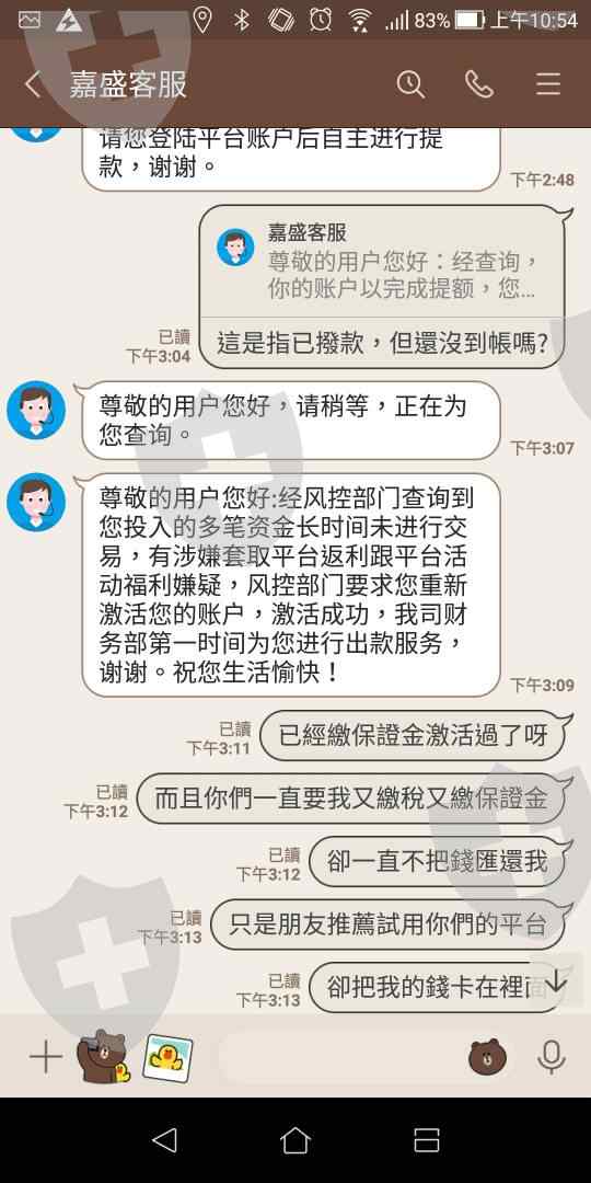 這平台還有LINE 客服繳完一樣再一樣金額越來越大理由越來越瞎反正就是把客戶的錢鎖住不給領回說什麼客戶惡意套取返利那返利也是平台自己推的優惠還說客戶套取簡直莫名其妙