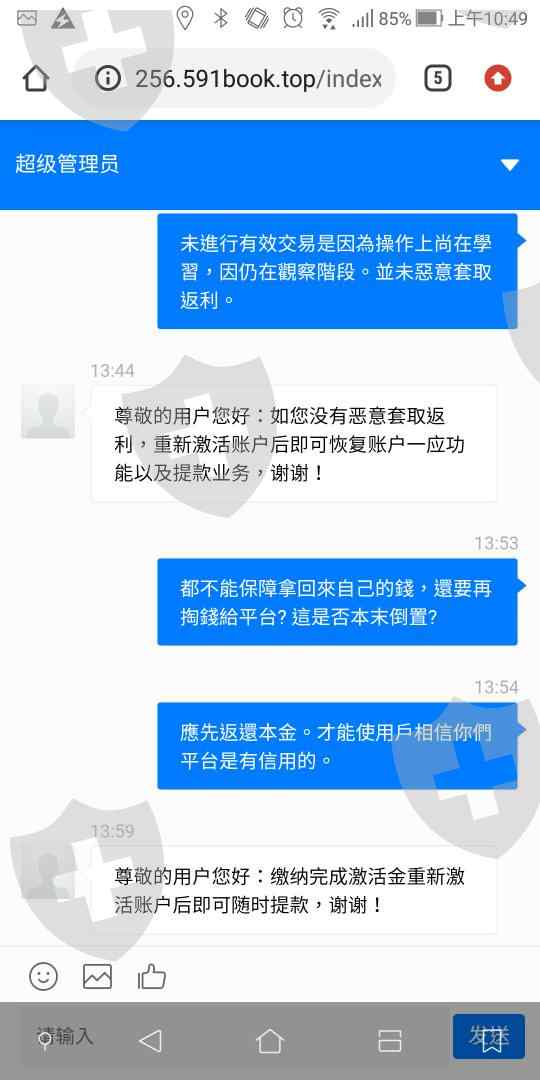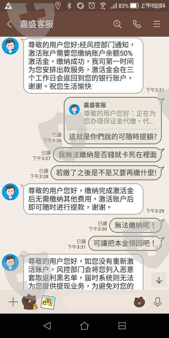 由該平台客服發送返利訊息誘導客戶入金後續竟說客戶入金未操作交易是在套取返利繳納稅費後又繳保證金,接著還有激活金等著你~激活金完了後不知道會找什麼理由啊!?然後介紹這平台的騙子還說什麼帳戶已關聯了,我不繳激活金,他的帳戶也不能出金,繞著要我把錢再入進去!